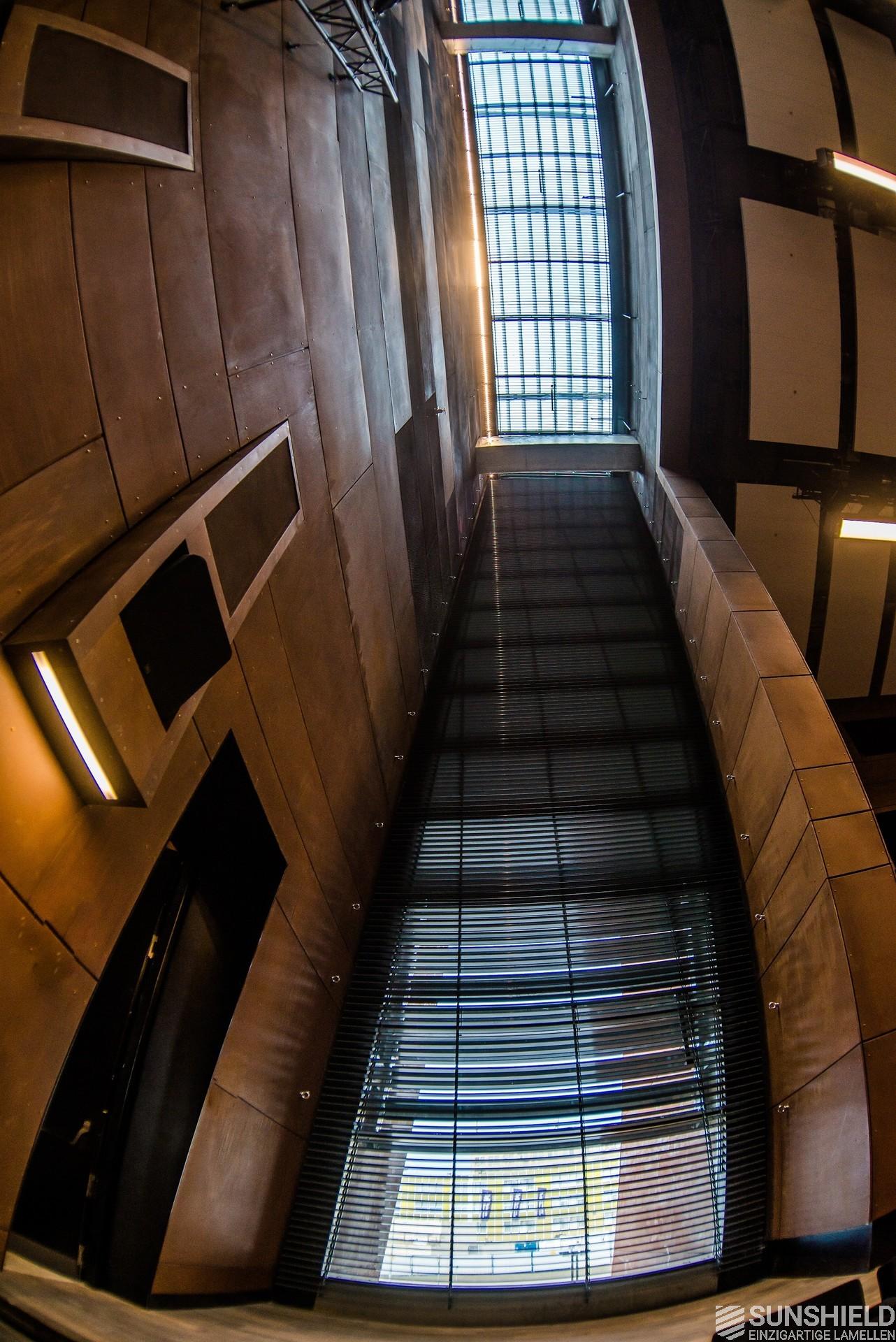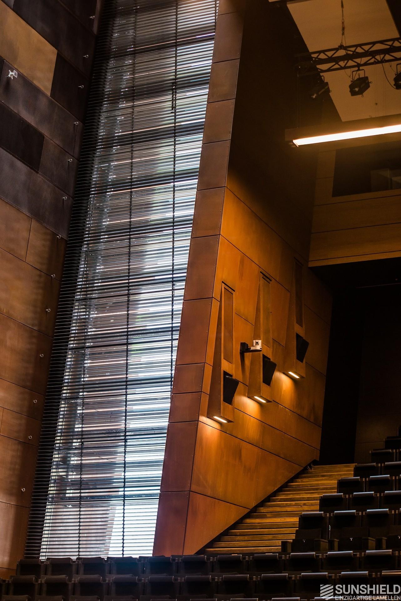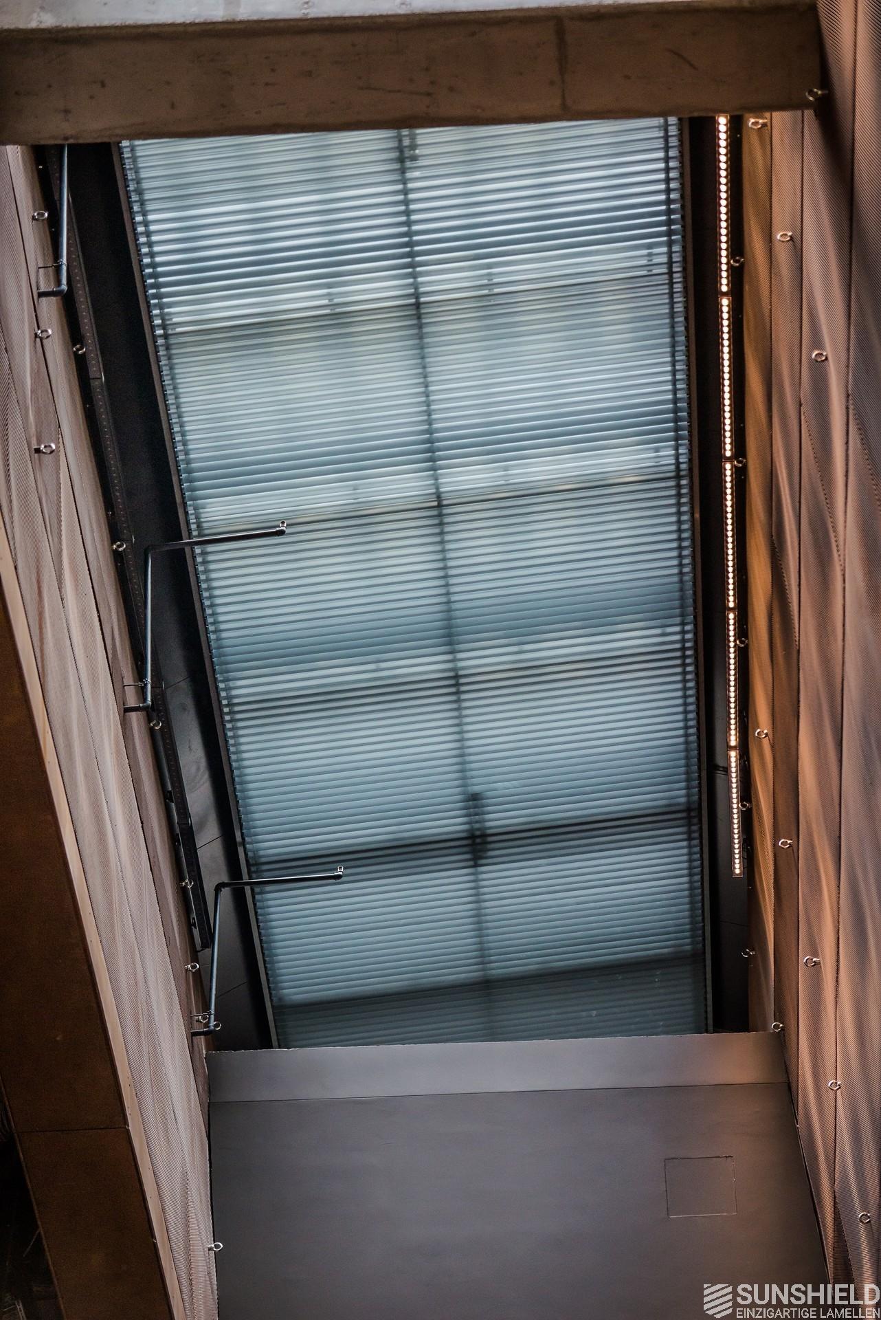 This louvers of choice here is the 88-E. A louver made of extruded aluminum with a width of 88 mm. Due to its shape, the blades not only overlap, but also interlock. In combination with brushes, an almost 100% blackout is achieved, allowing optimal daylight control.