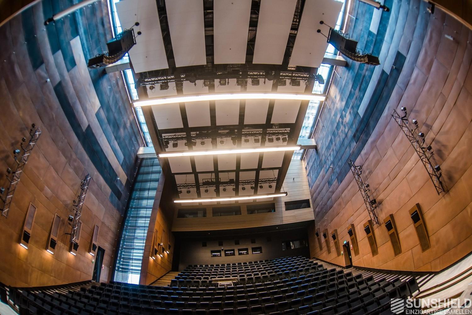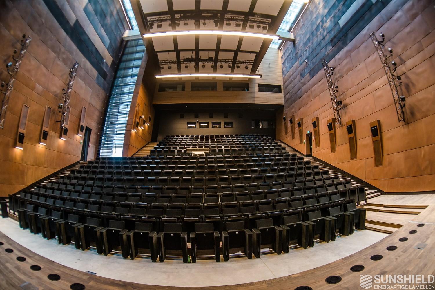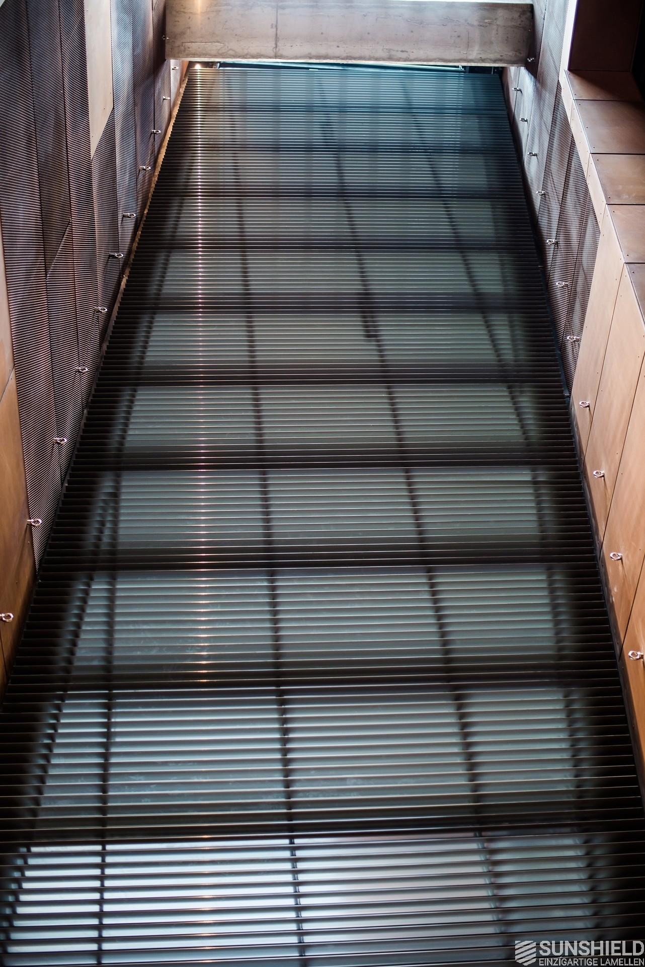 This louvers of choice here is the 88-E. A louver made of extruded aluminum with a width of 88 mm. Due to its shape, the blades not only overlap, but also interlock. In combination with brushes, an almost 100% blackout is achieved, allowing optimal daylight control.