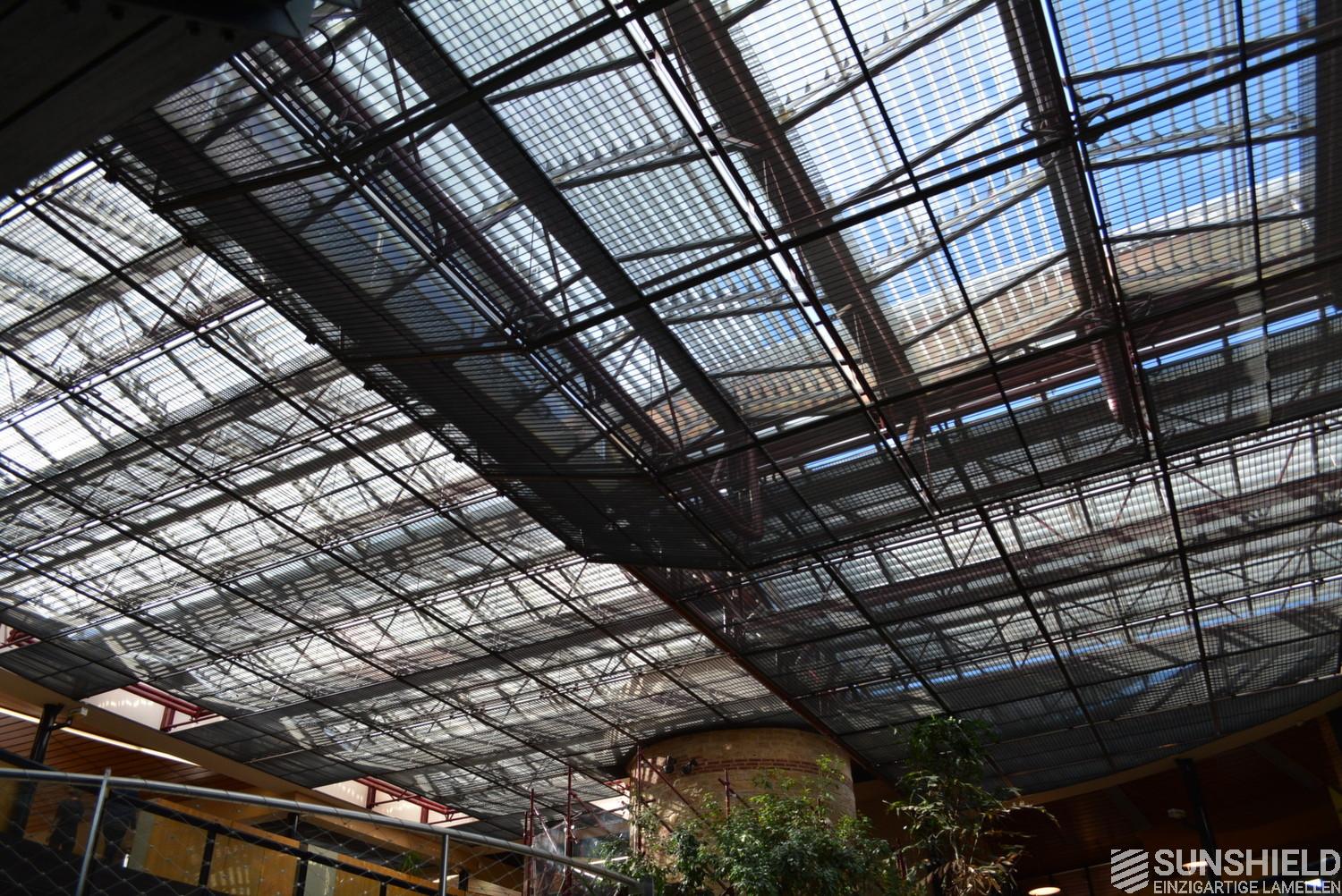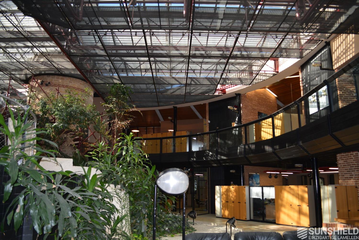 Although there was another solar protection system in place already, Banque Populaire in Cahors (France) decided to invest in Sunshield 145-E system. An upgrade with full automatic control of Somfy, to control sun- and daylight and to avoid the severe solar heating problems for the close to the 1000 m2 fully glazed atrium.