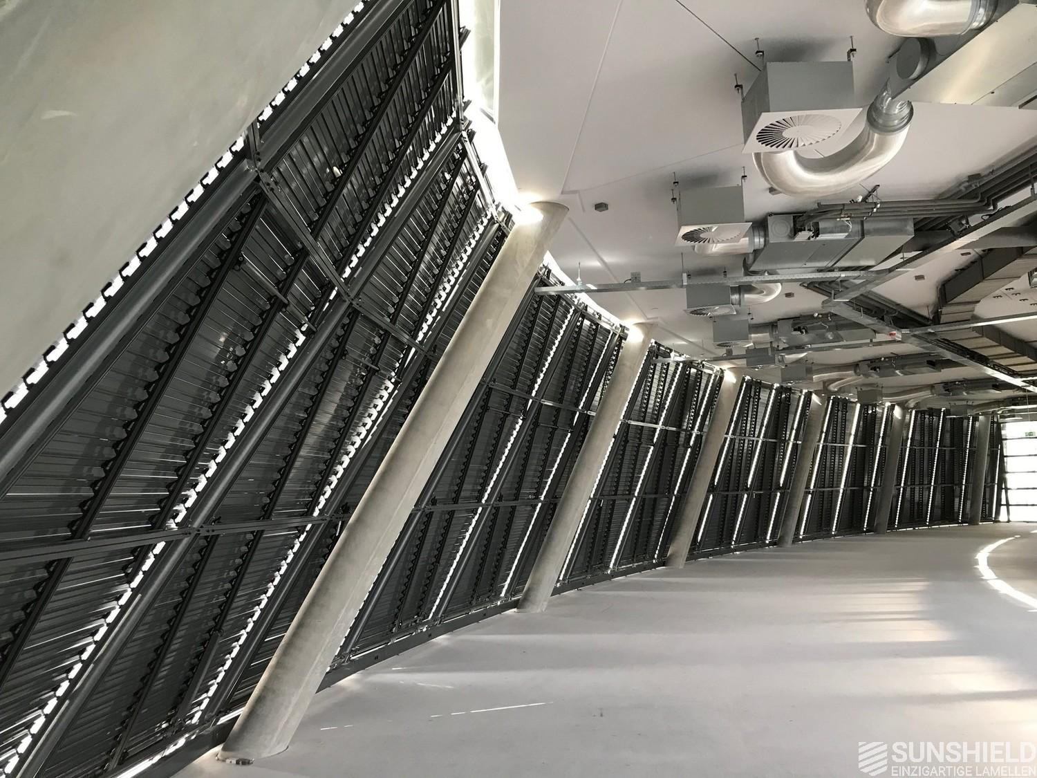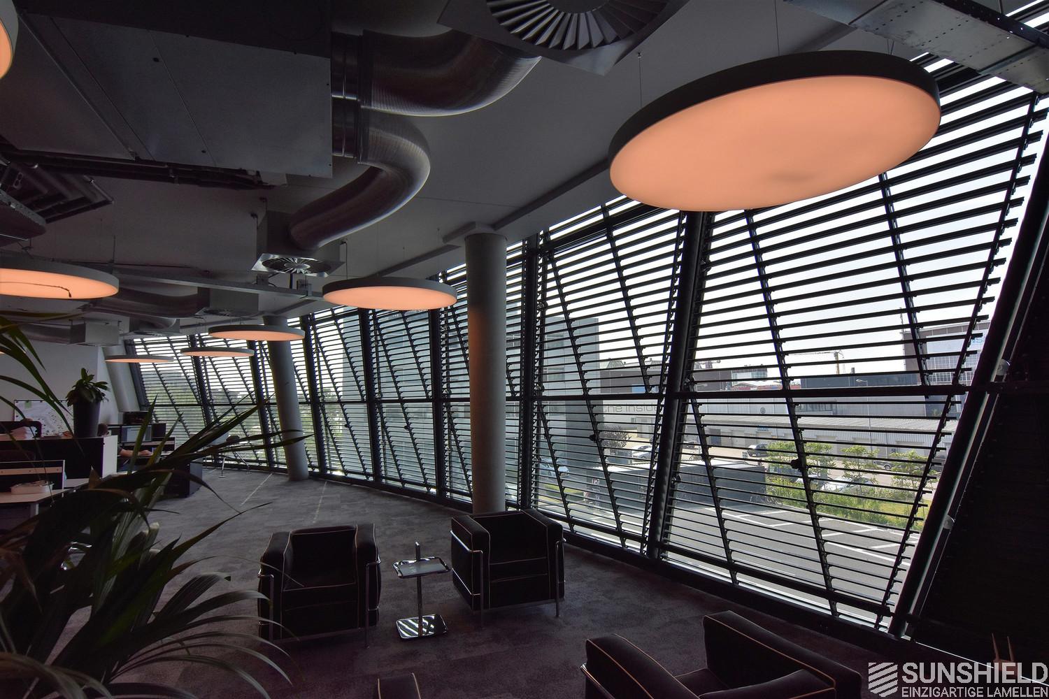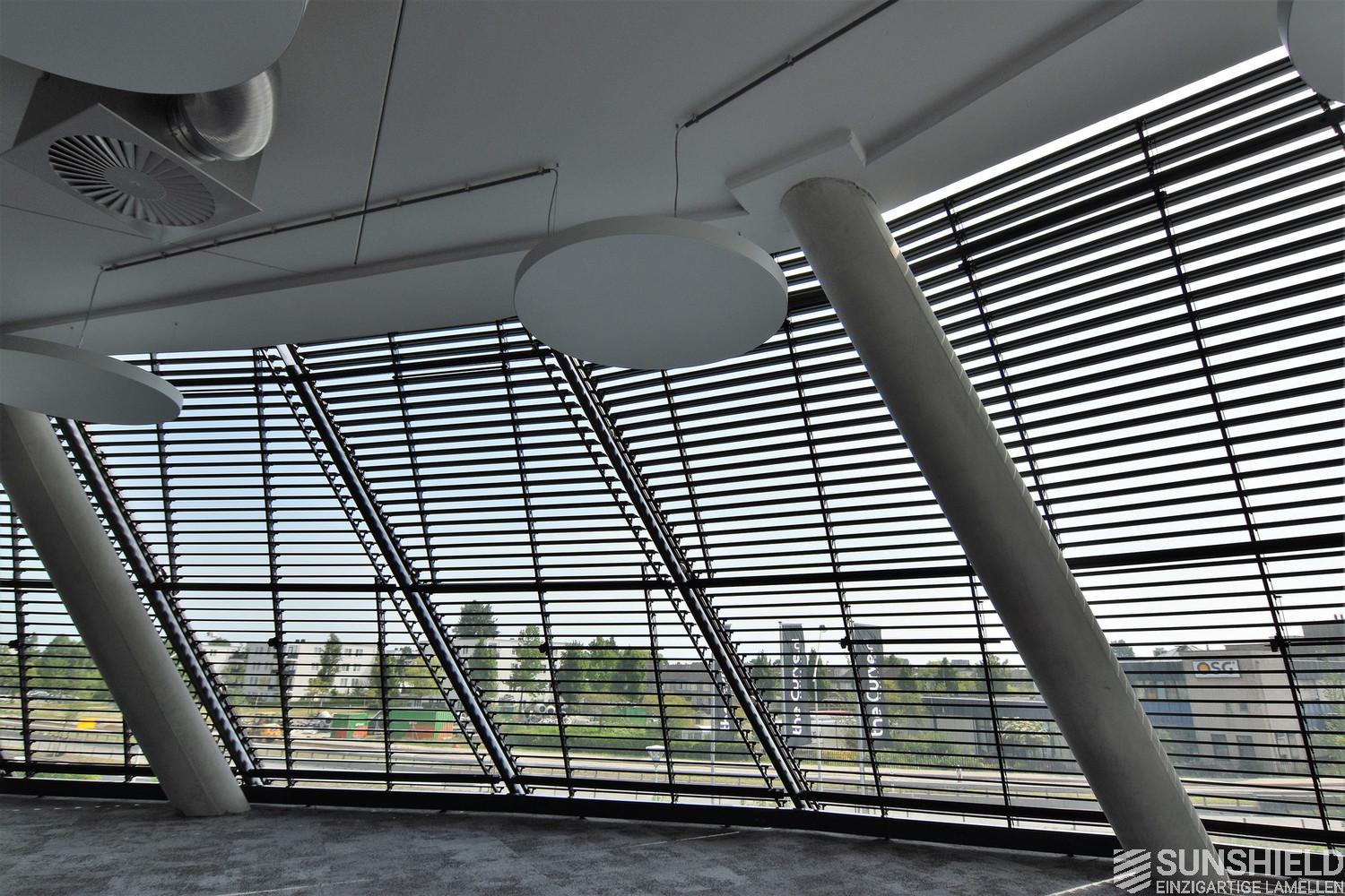 For The Curve, Sunshield has designed a system with the 96-E louver. Each individual slat is unique. Lengthwise and/or the ends are sawn at unique angles. Customization at its best.