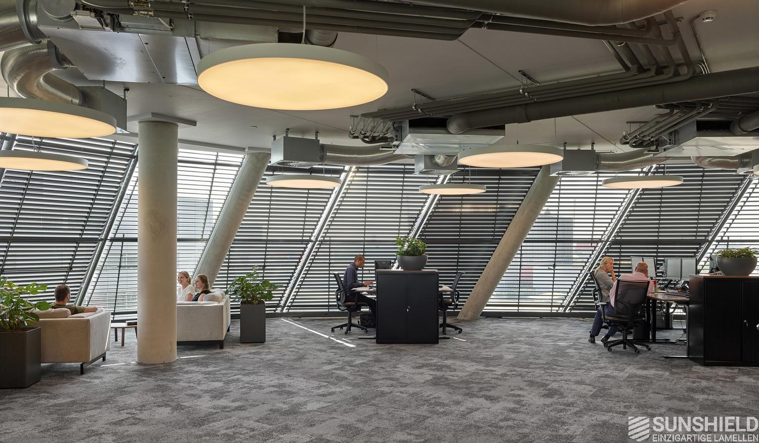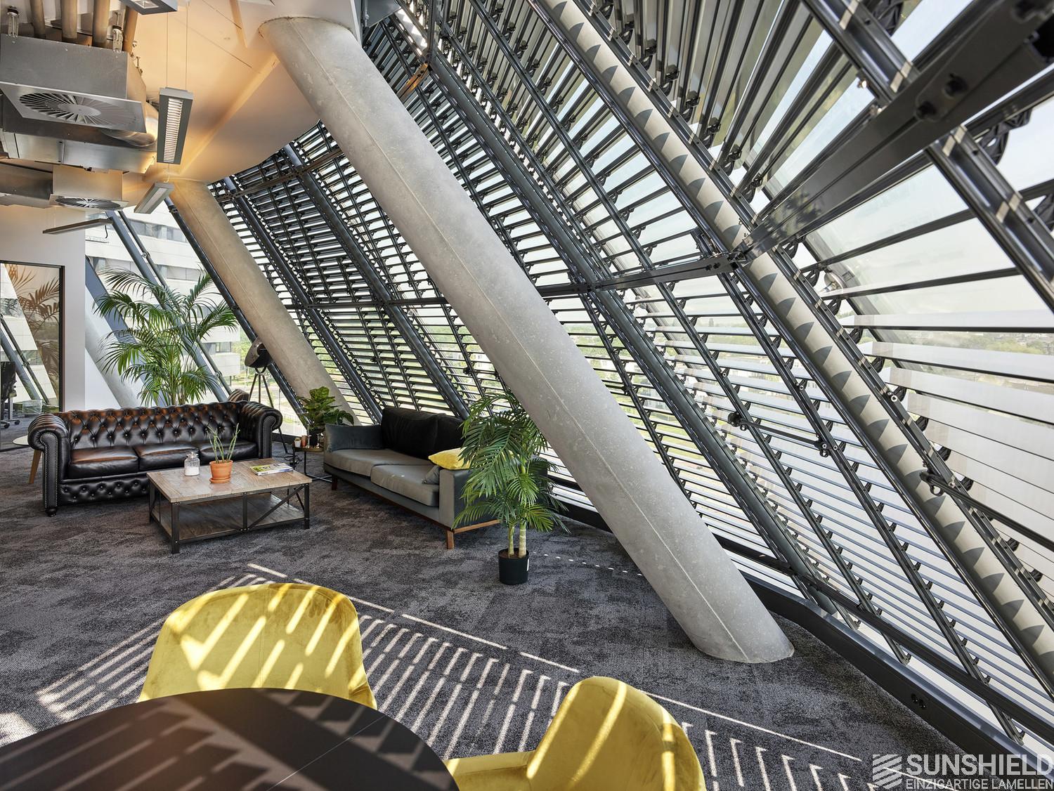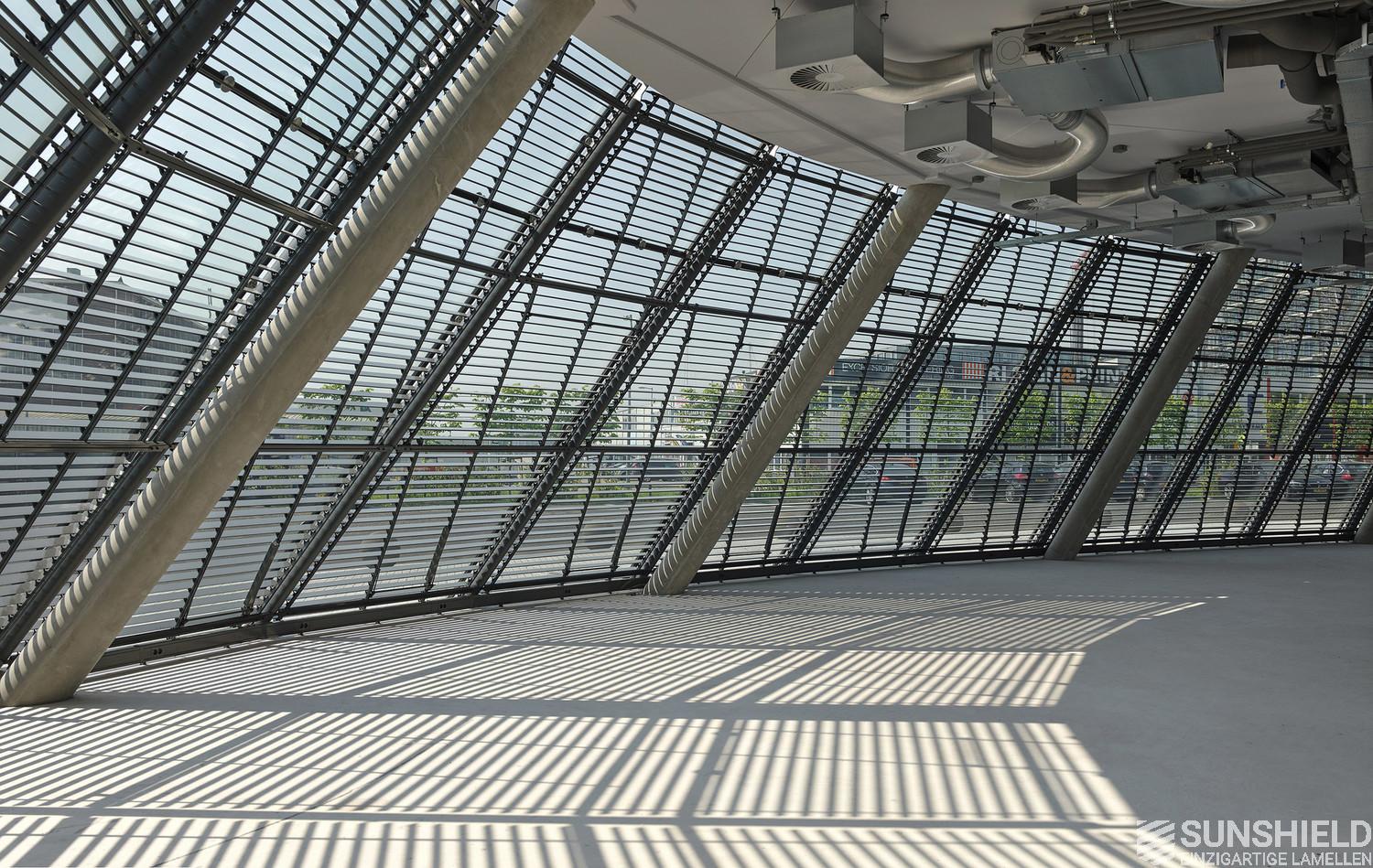 For The Curve, Sunshield has designed a system with the 96-E louver. Each individual slat is unique. Lengthwise and/or the ends are sawn at unique angles. Customization at its best.