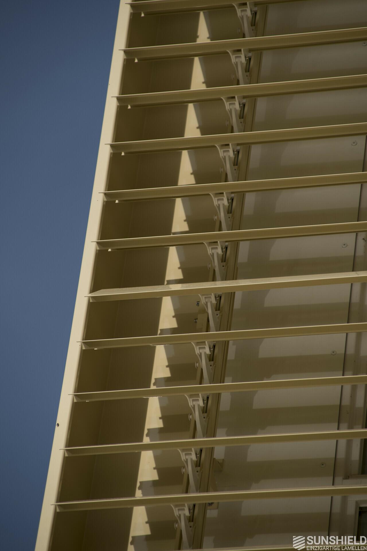 Both louver systems have a high and a low side. The high side of the system in the west borders the high side of the system in the south. The residents can both operate independently of each other.