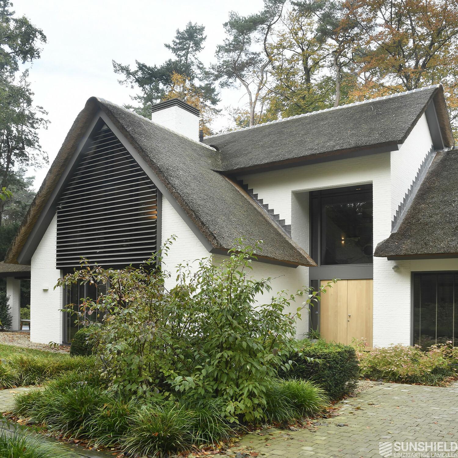 In this idyllic setting a rustic villa is fitted with unique louvers. By Sunshield.