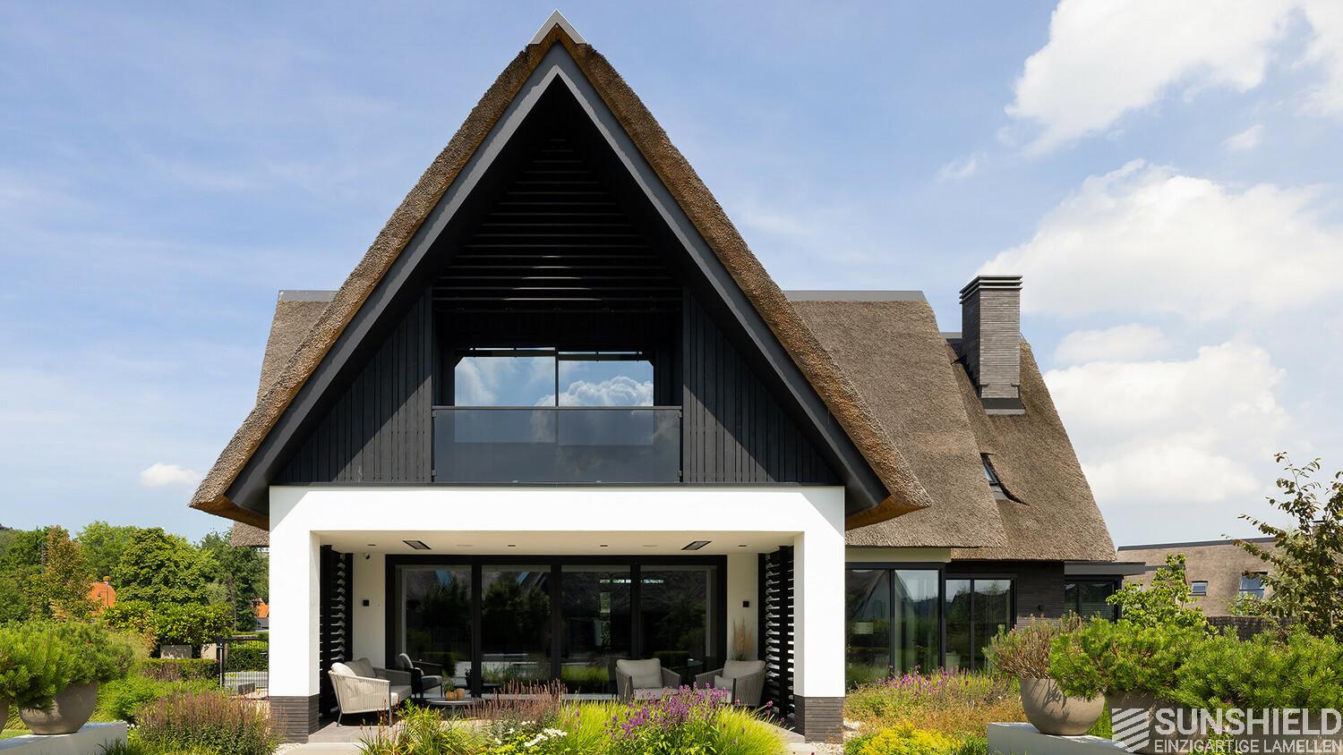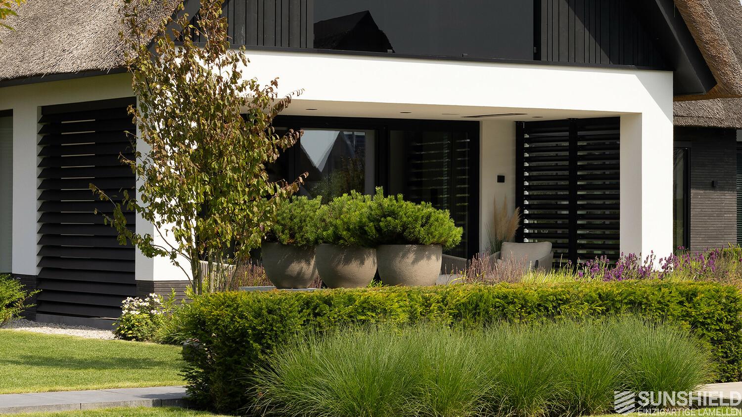 Here, a modern villa has been fitted with unique louvers. By Sunshield, commissioned by Zwarts Premium Builders. Zwarts built the residence based on a design by Bongers Architects.