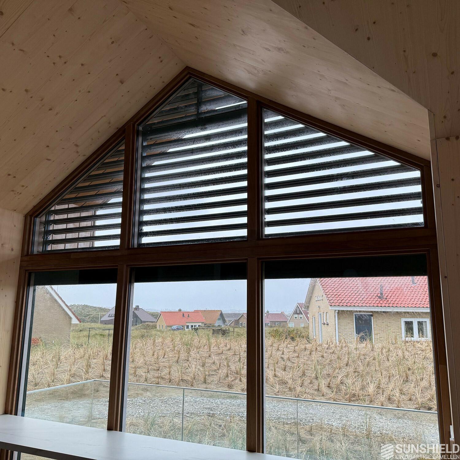 Here a holiday home has been fitted with unique louvers. By Sunshield, commissioned by Veldman Zonwering in Heerenveen (NL). The home has been rebuilt to a design by Jort Spanjer architect.