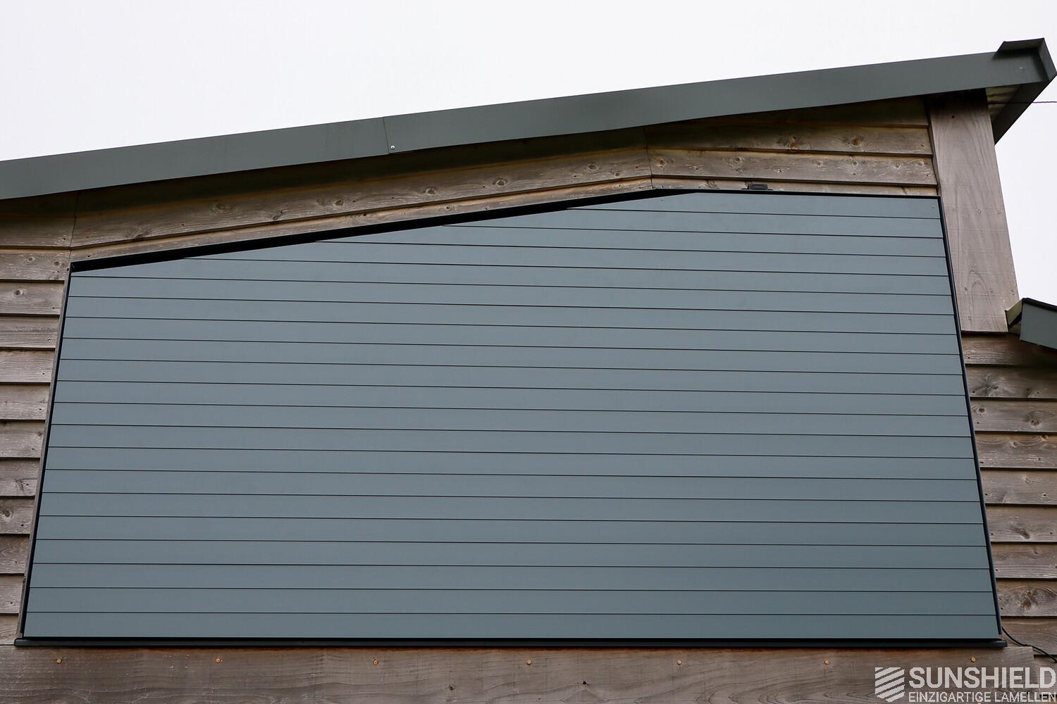 The colleagues in England recommended a 96E aluminium louver system. This is a sleek and versatile option with excellent sun protection properties. Thanks to the generous 9-centimeter spacing between the blades, this system also offers significant visual transparency.