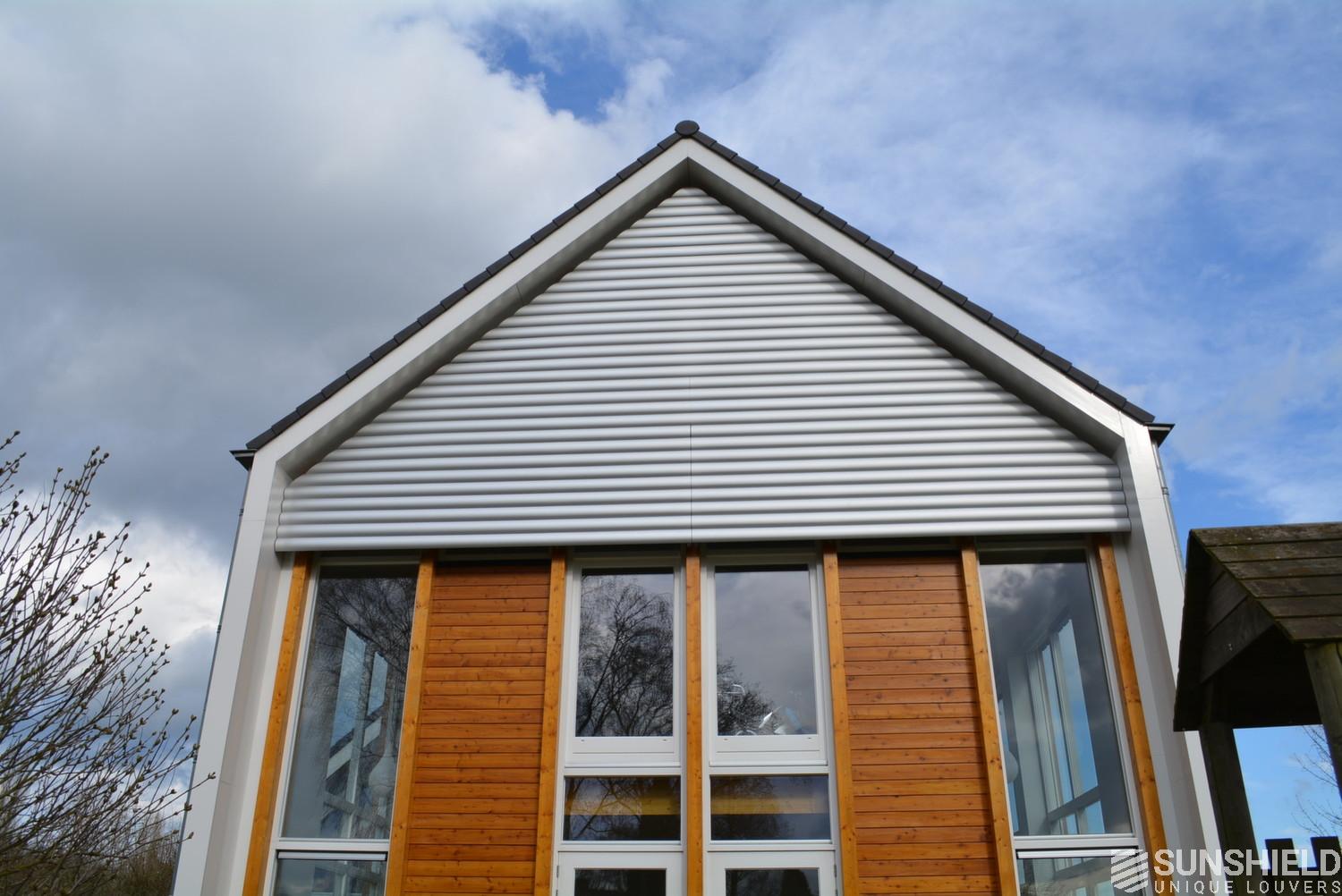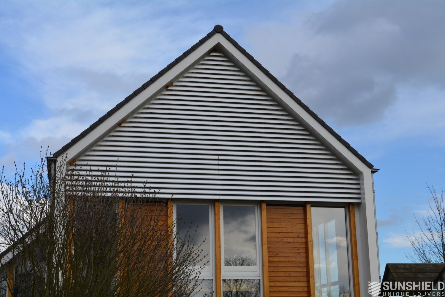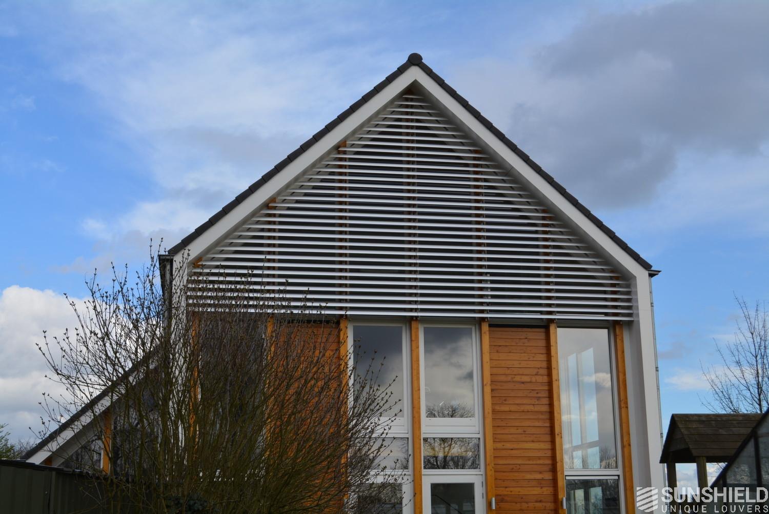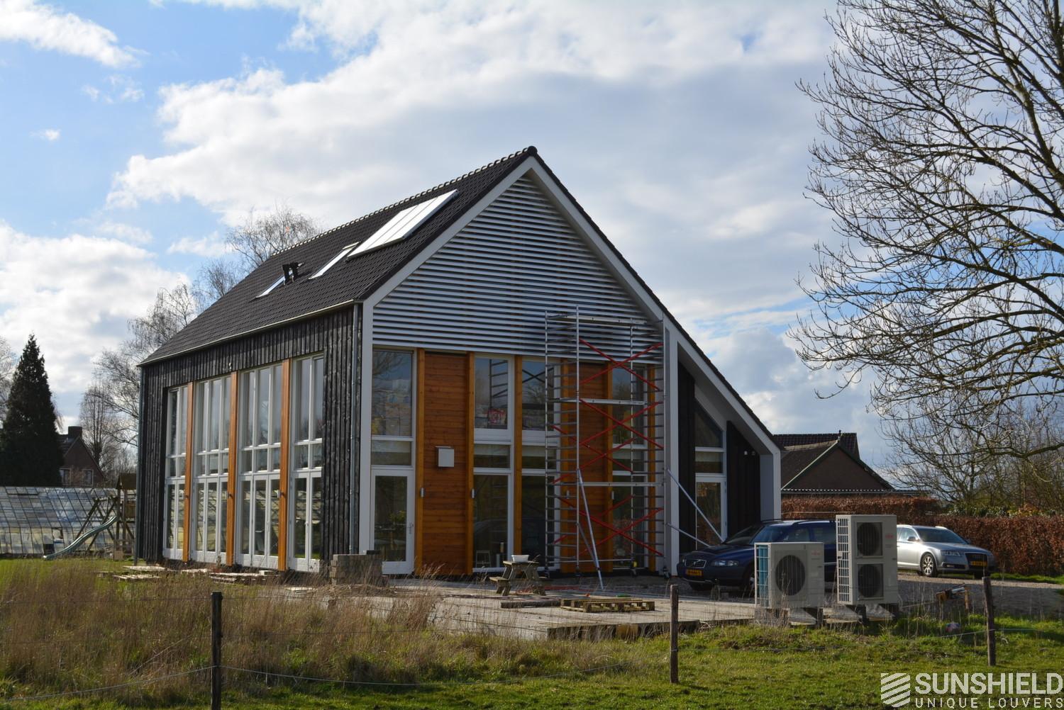 This project has been realised with 145E Louvers at the front side and the back side of this modern country house. The surface treatment is natural anodized.