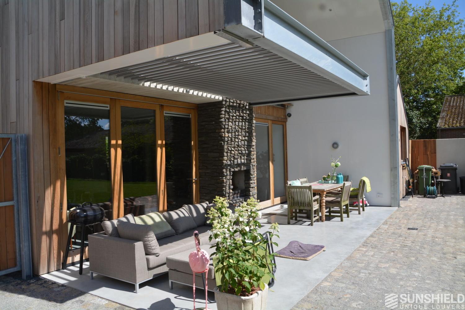 The residents ultimately opted for the 155-E louver. With this type, the slats not only fall over each other, but also interlock into each other. This way a waterproof surface is created.