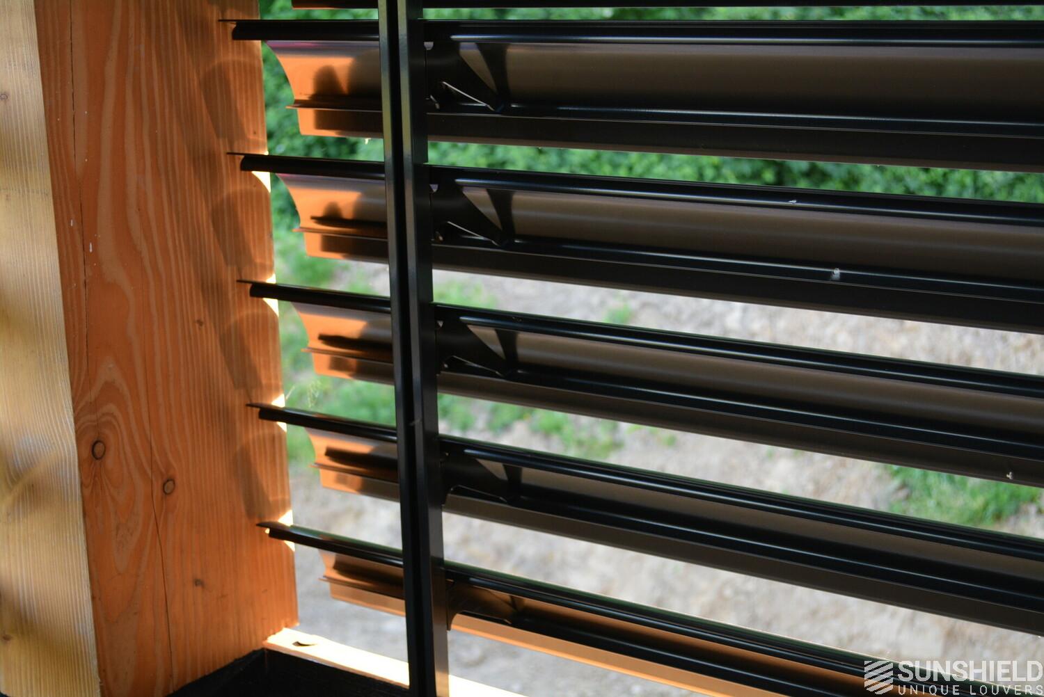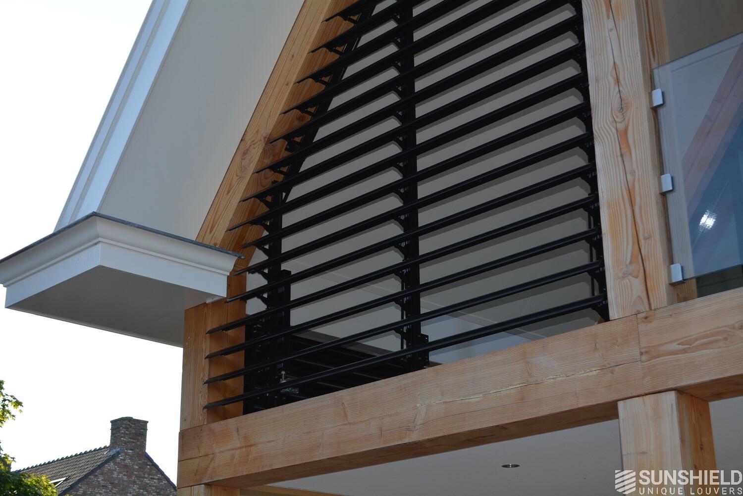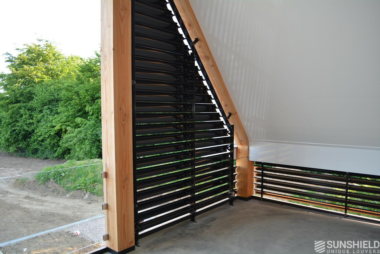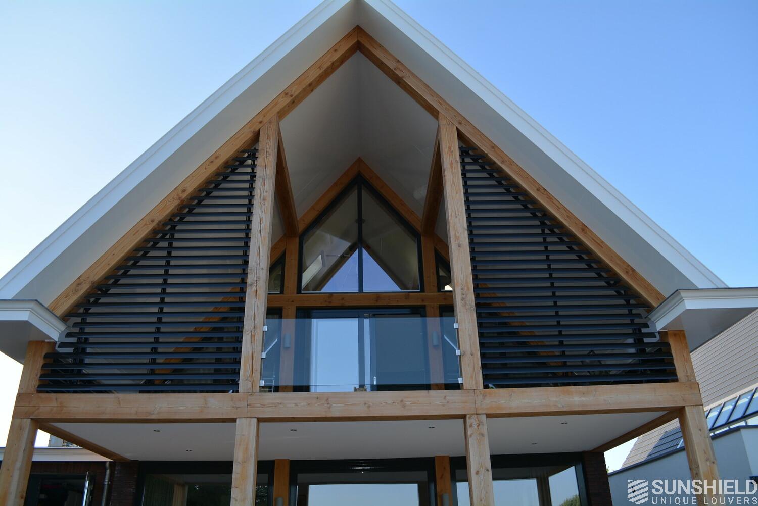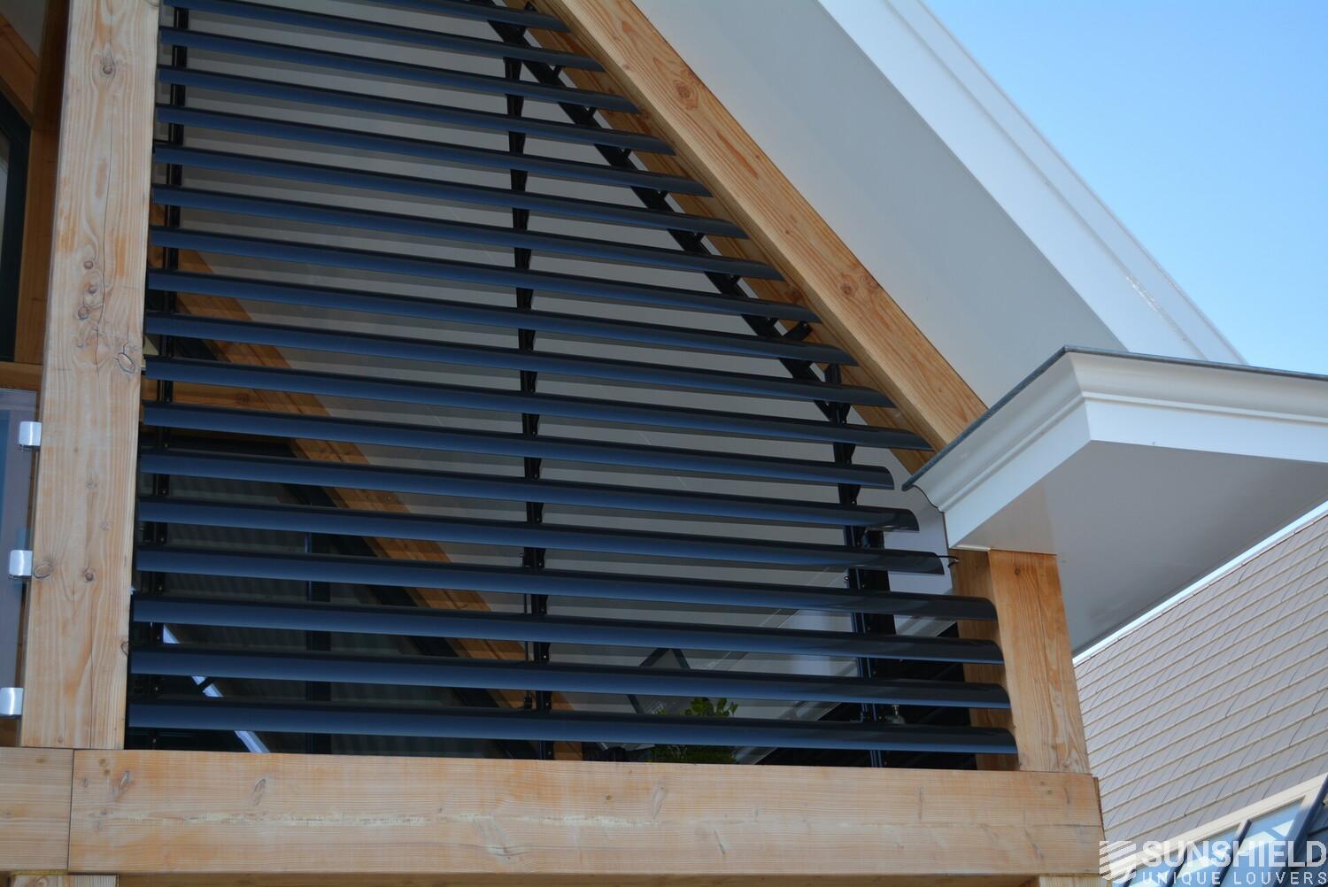 The residents here have opted for the 145-E louver. A slat with a convex front and a width of 145 mm. The bigger brother of the 75-E so to speak.