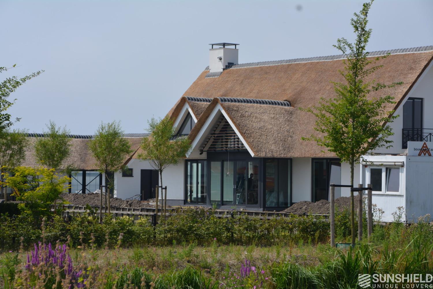 Here is a modern villa fitted with unique louvers. The residents have chosen the 148-W louver. A slat with a width of 148 mm and a view between the louvers of 140 mm – so with a good view.