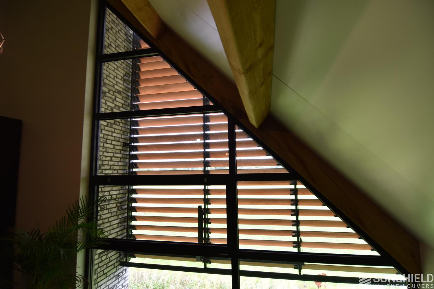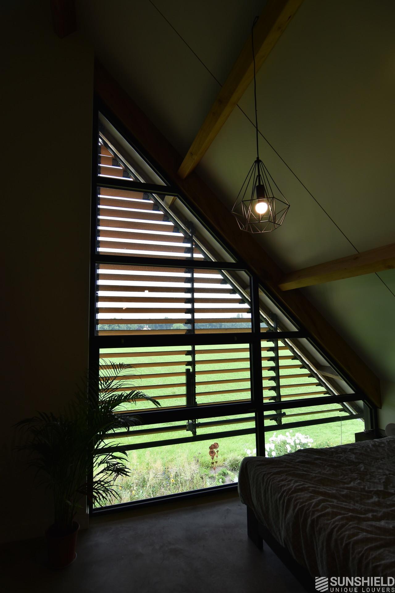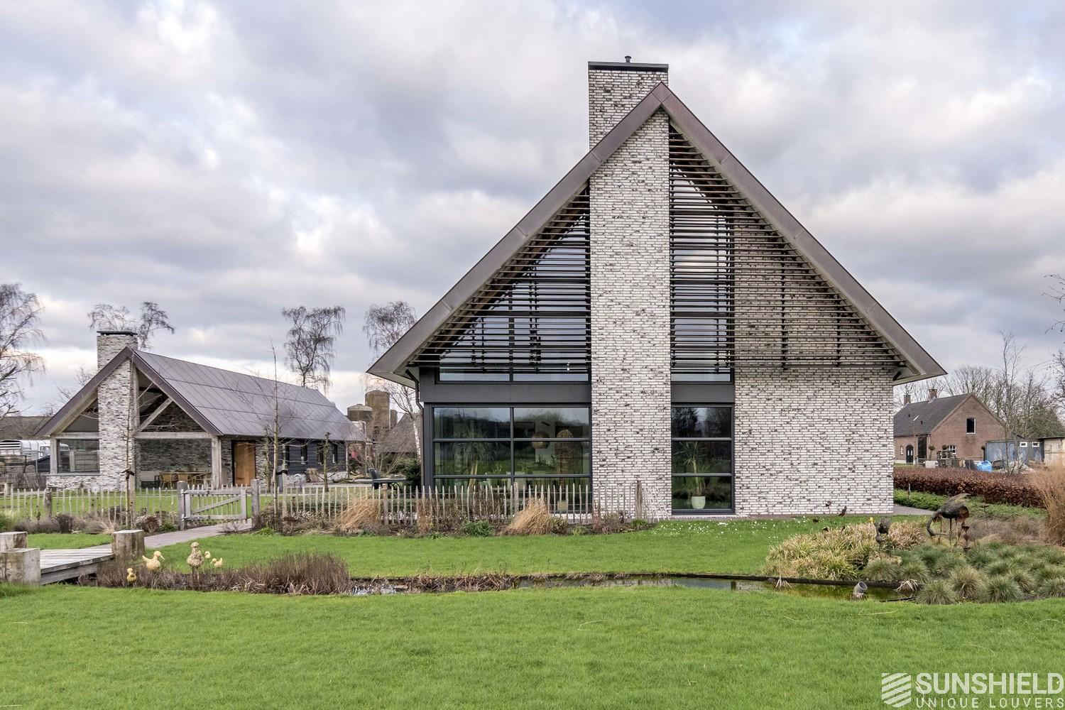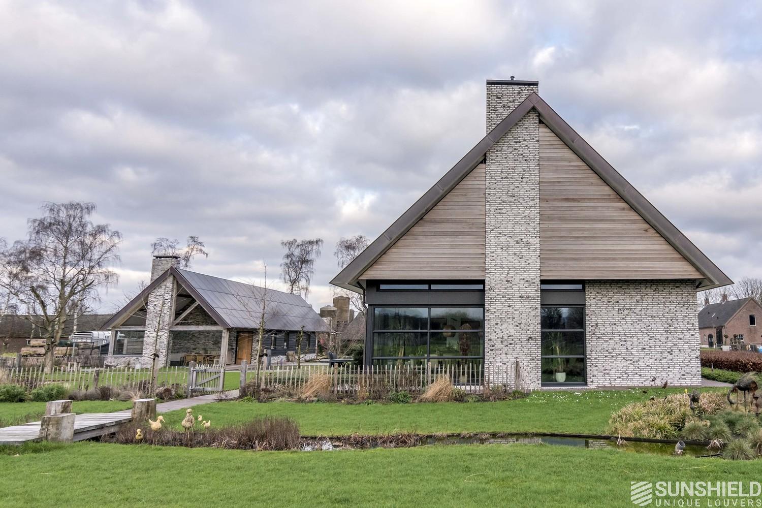 Architectural firm Lauwers Ontwerp has commissioned Sunshield to provide sun protection for a country house in rural Reusel, located between Eindhoven (NL) and Turnhout (B). Two slat systems have been placed here, both triangular in shape.