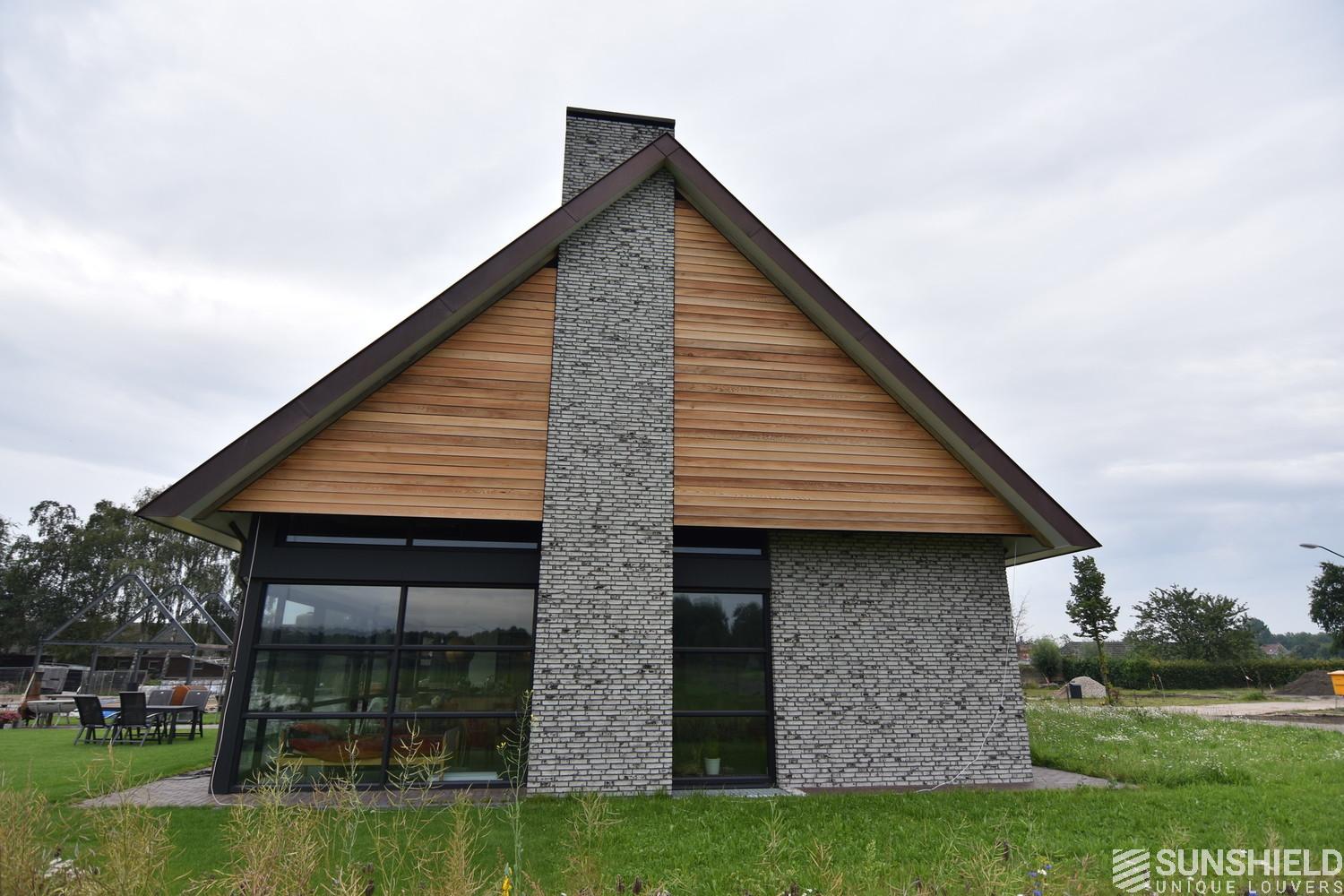 For the louvers, the choice fell on the 148-W, a louver made of Western Red Cedar (WRC) with a width of 148 mm. Western Red Cedar wood has a straight grain, is lightweight, stable and durable.