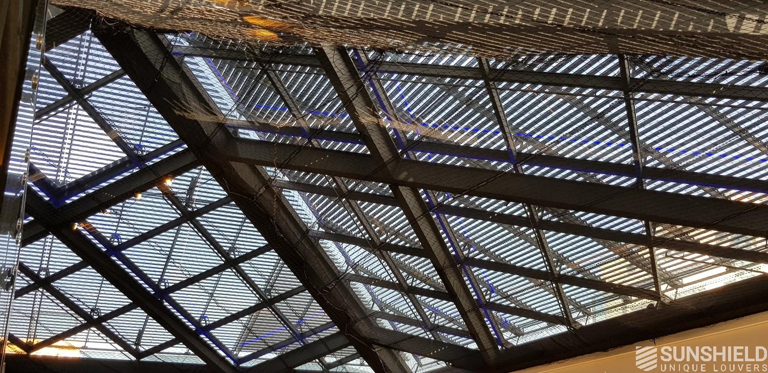 Gelderlandplein has a special glass roof. Why is this special? In the first place because it has the shape of a pyramid. Plus it's huge! On behalf of Kroonenberg Groep, Sunshield provided the glass roof of Gelderlandplein with unique louvers.