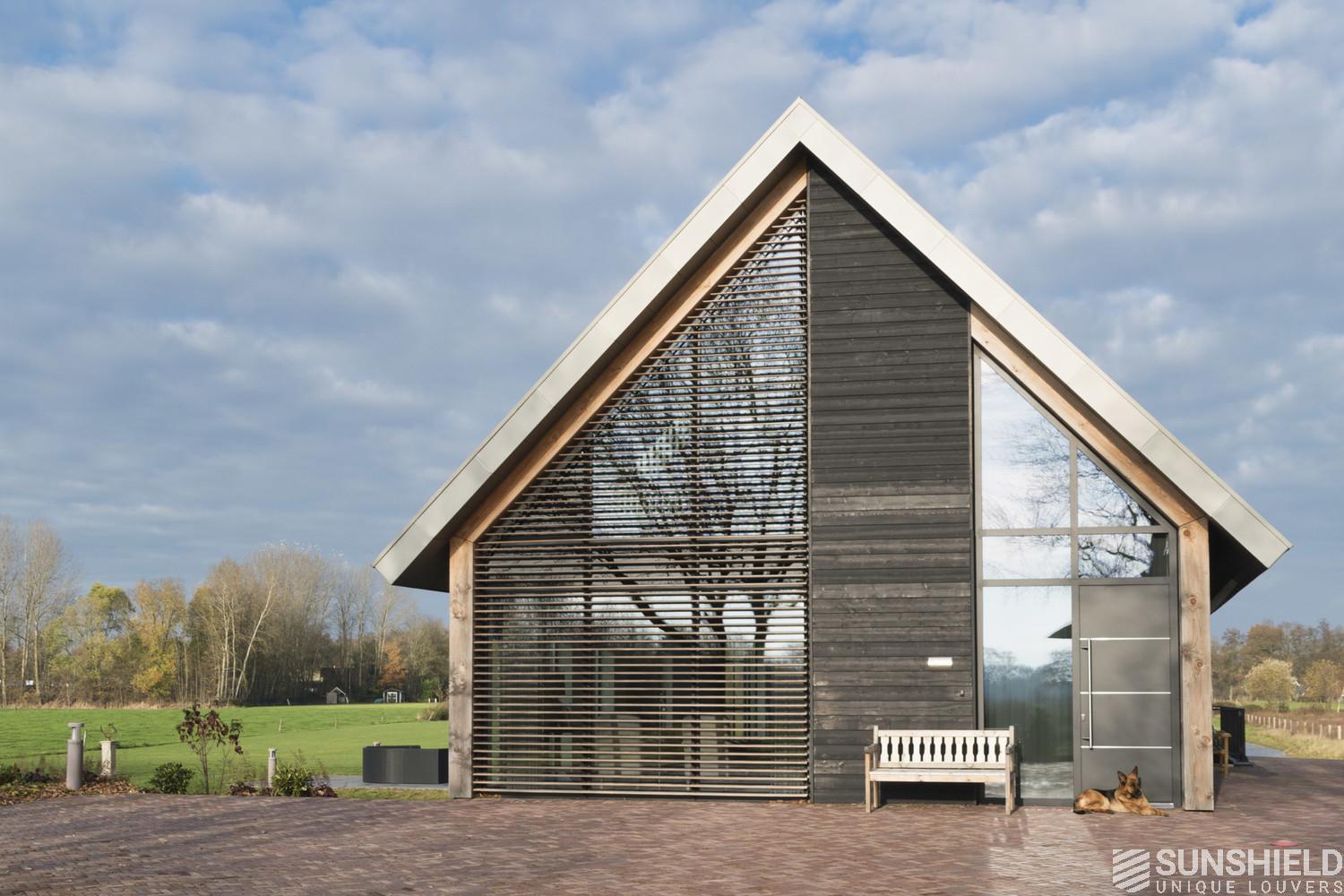 A country house in the picturesque Zuna, municipality of Wierden (NL), is equipped with louvers from Sunshield. The blades are made from untreated western red cedar and integrate nicely into the style of the barn house.