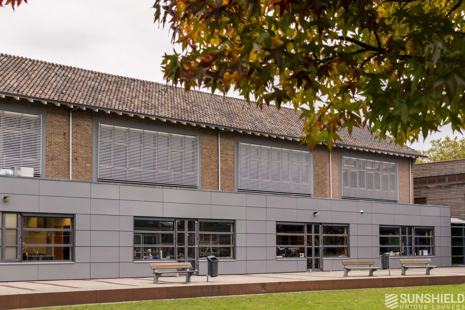 The school board has chosen the 75-E louver. Which has a blade with a convex front and a width of 75 mm. The sides of the louver systems are sealed with finishing profiles, preventing light from the sides. Moreover, it looks nice. Finished.