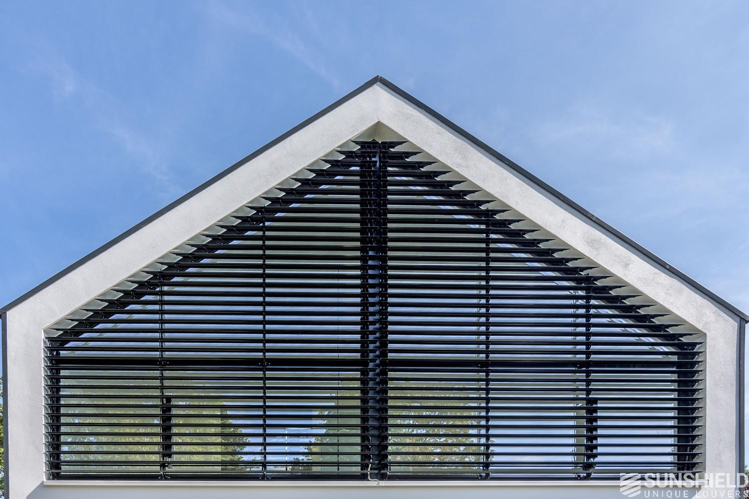 The rooflights at the left and right side of the house are utilised wih louver systems too. The bigger one is 6,5m2, the smaller 3,5m2. For the rooflights, the home owner opted for the 75-E louver.