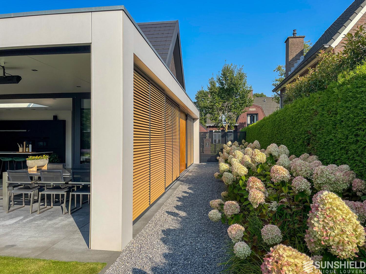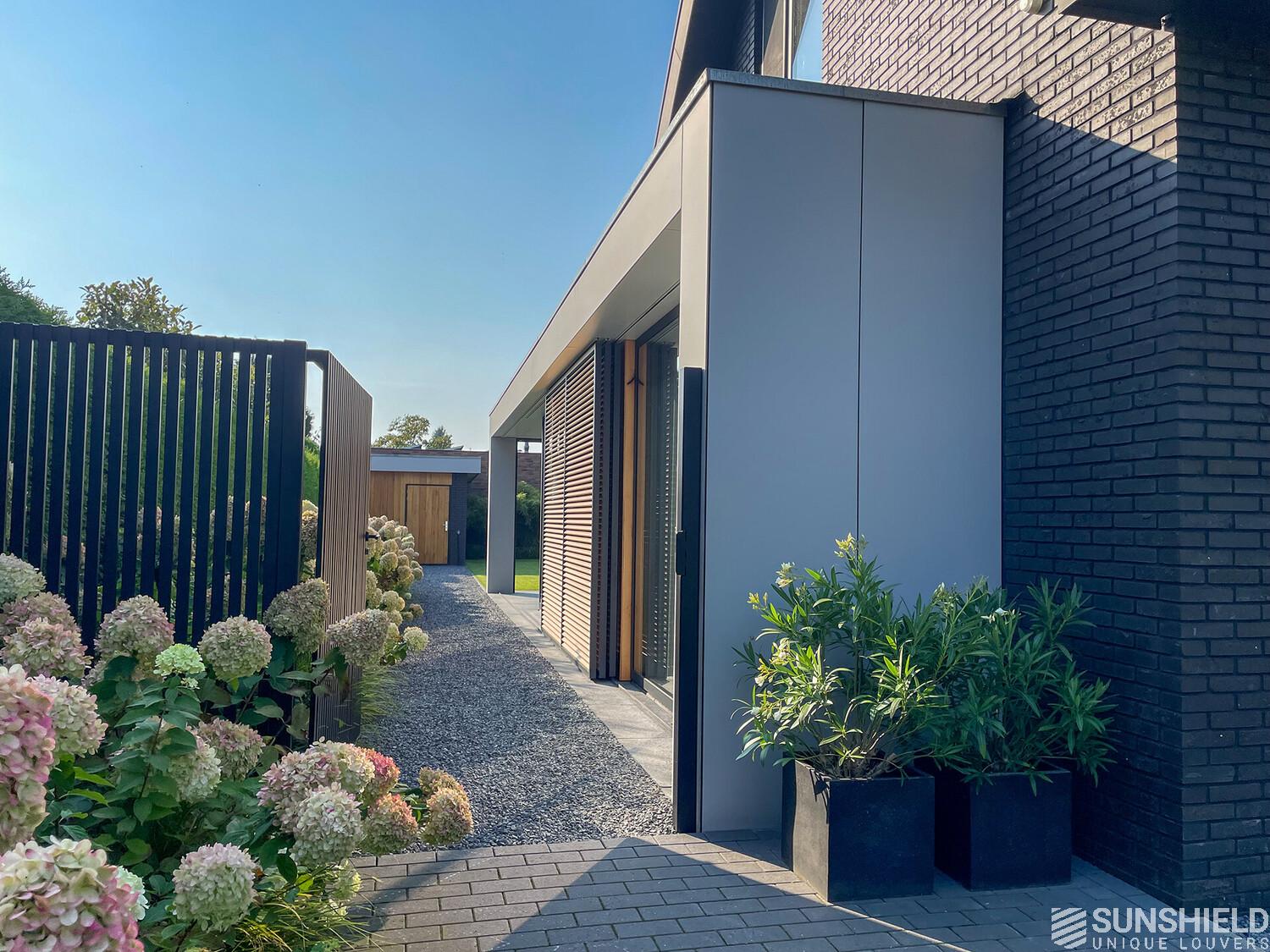 Here, a residence has been fitted with unique louvers. By Sunshield. This new-build home was realised based on a design by Sloven Architecture in Den Bosch (NL).