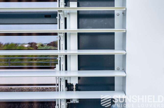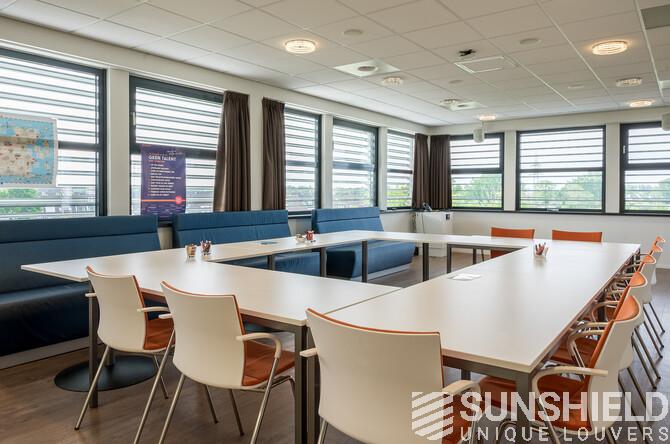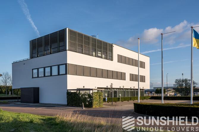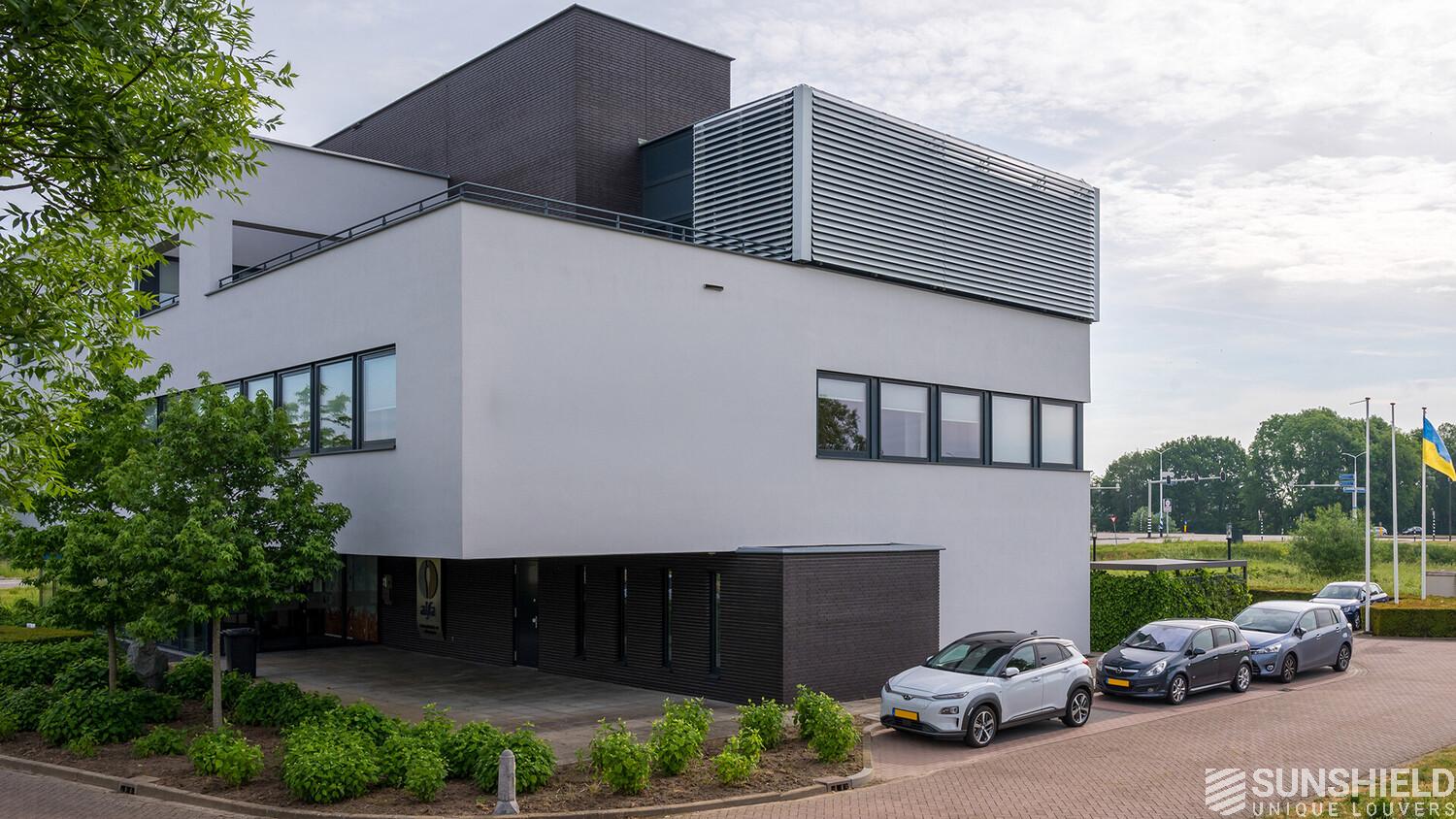 And right here, in "ut Veer", the modern office building of Alfa Accountants is equipped with several louver systems. By Sunshield, in colloboration with Marquart Architecten.