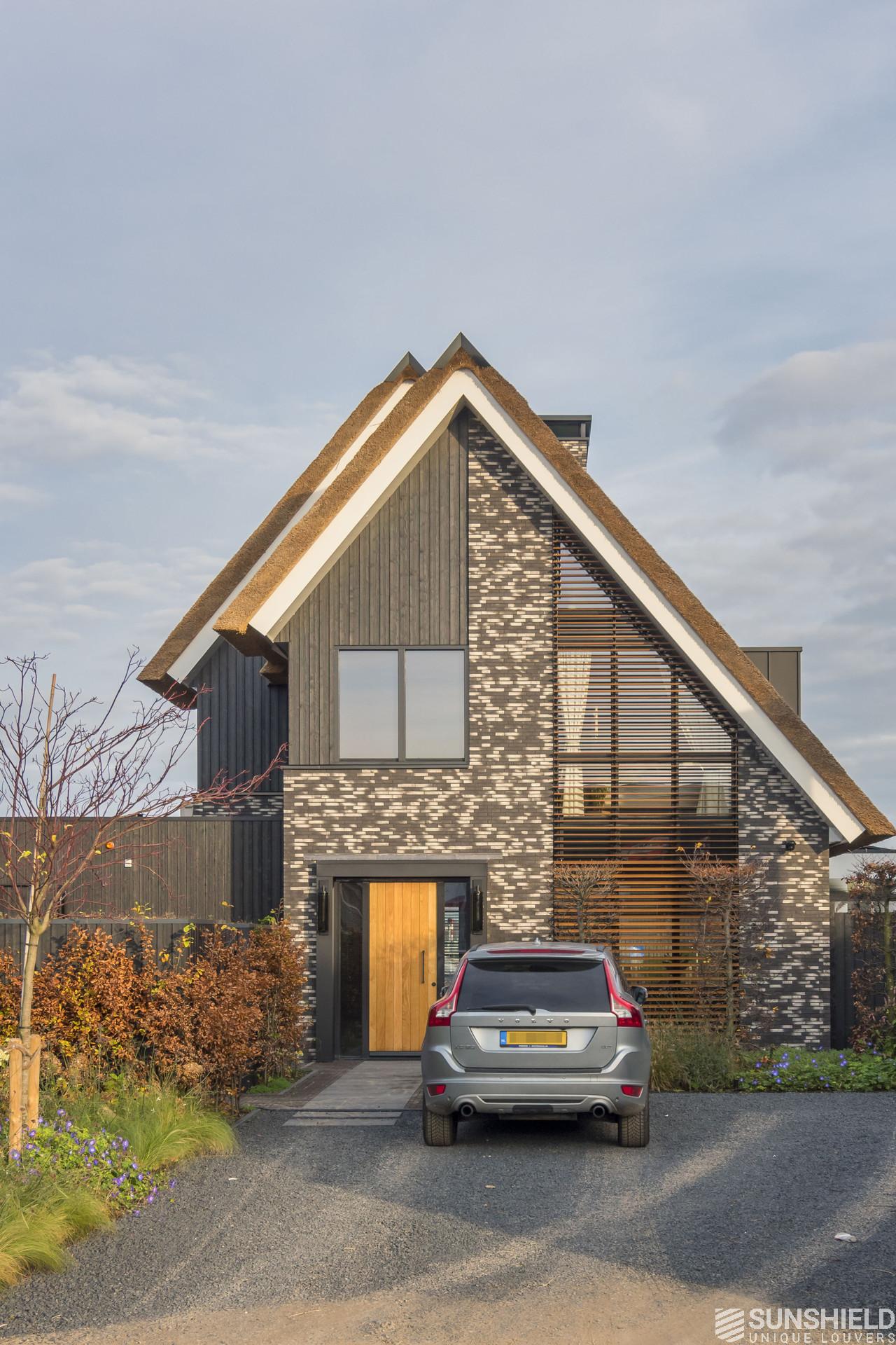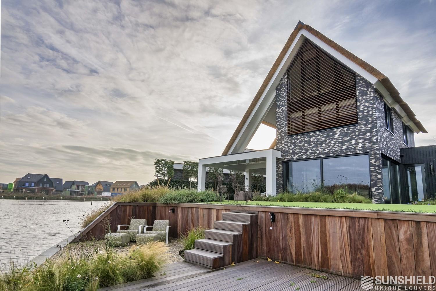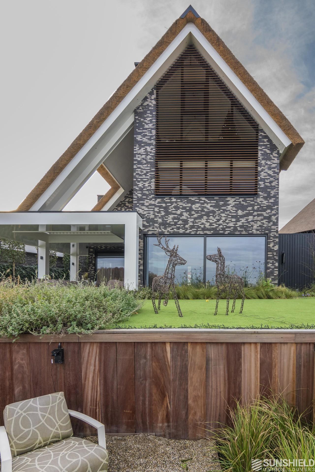 The front and rear facade of a stylish detached house in Blaricum is equipped with four louver systems.