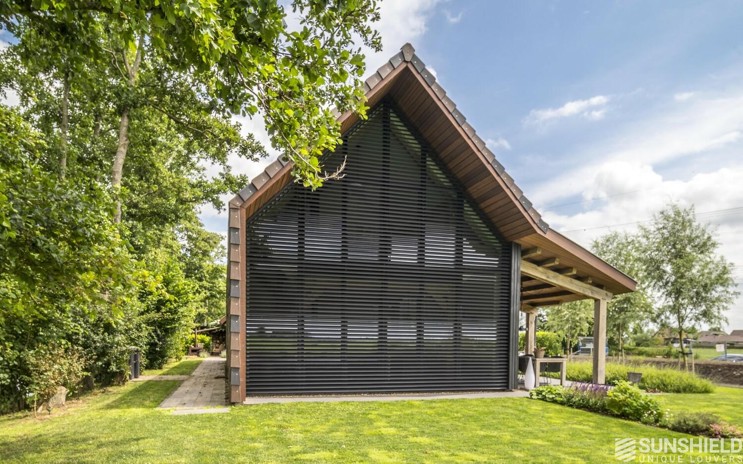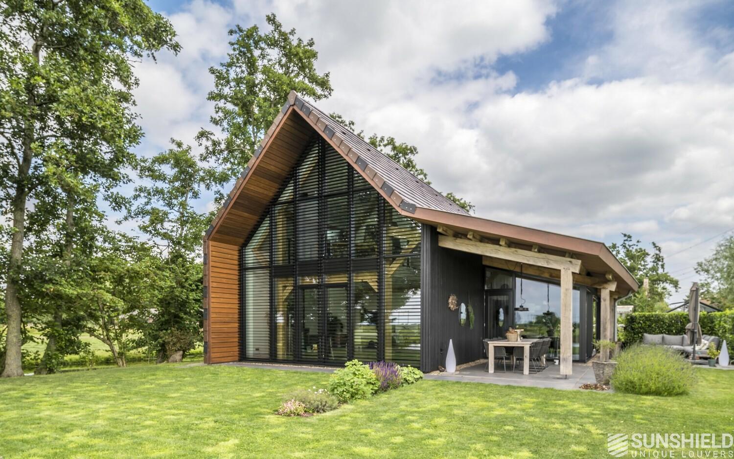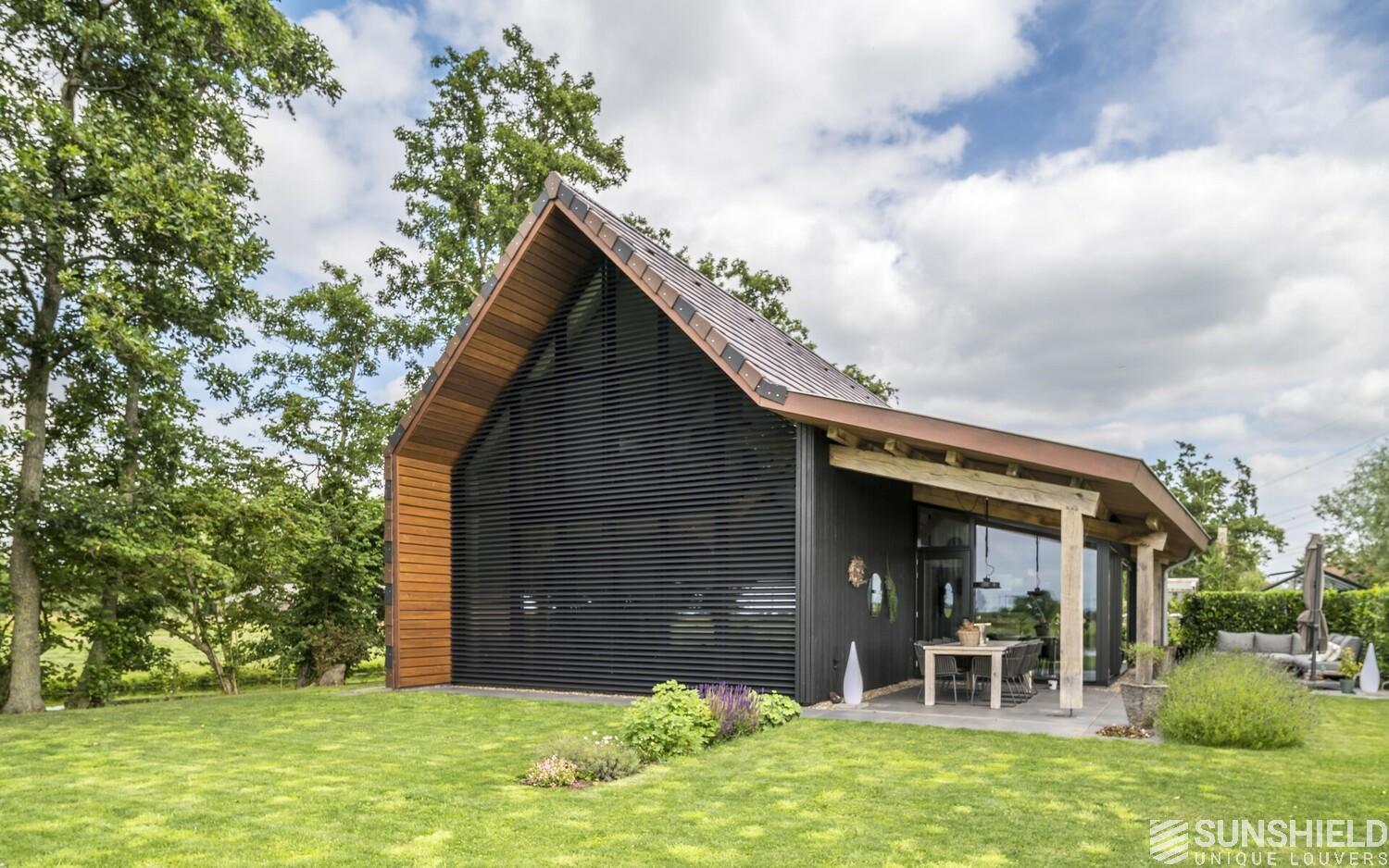Here, in collaboration with Arco Architecten Bna, a stylish barn house is fitted with two louver systems. By Sunshield.