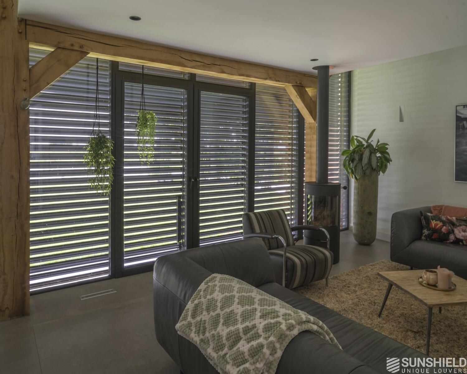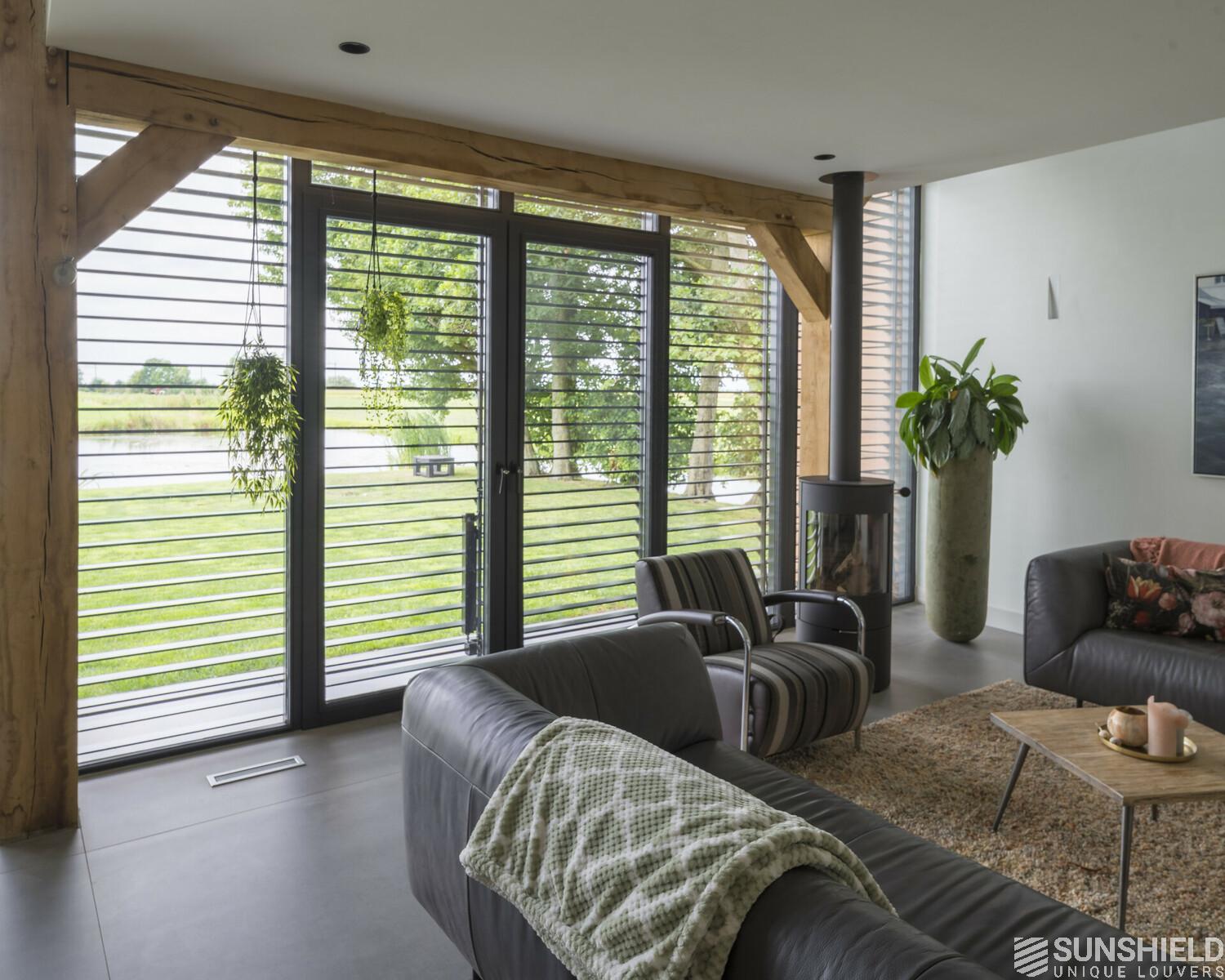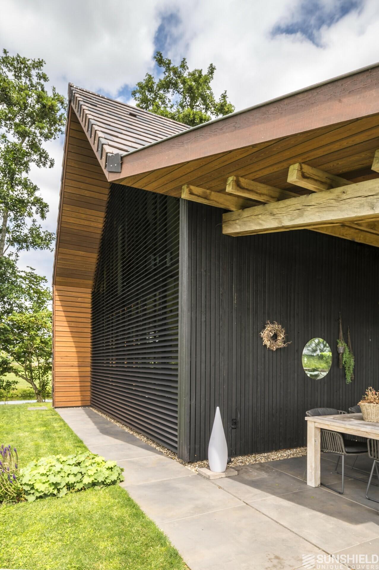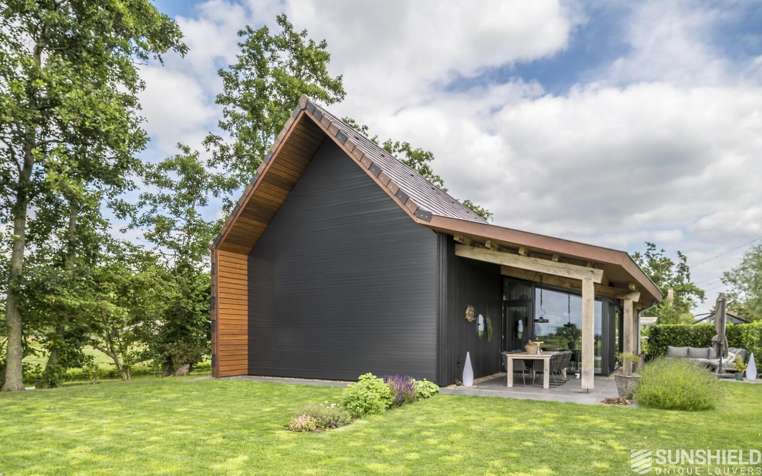 Here, in collaboration with Arco Architecten Bna, a stylish barn house is fitted with two louver systems. By Sunshield.