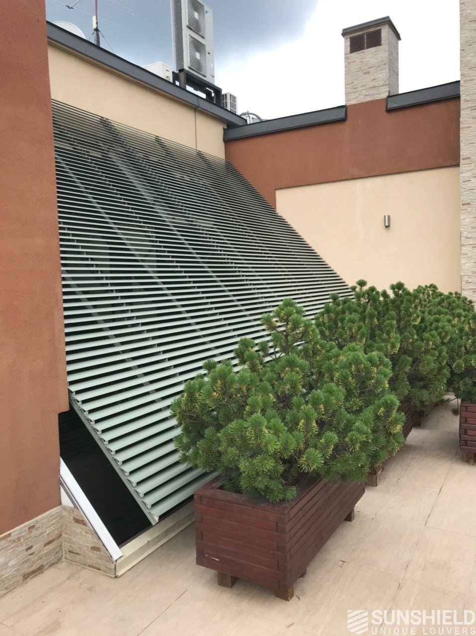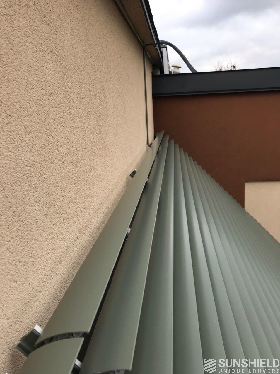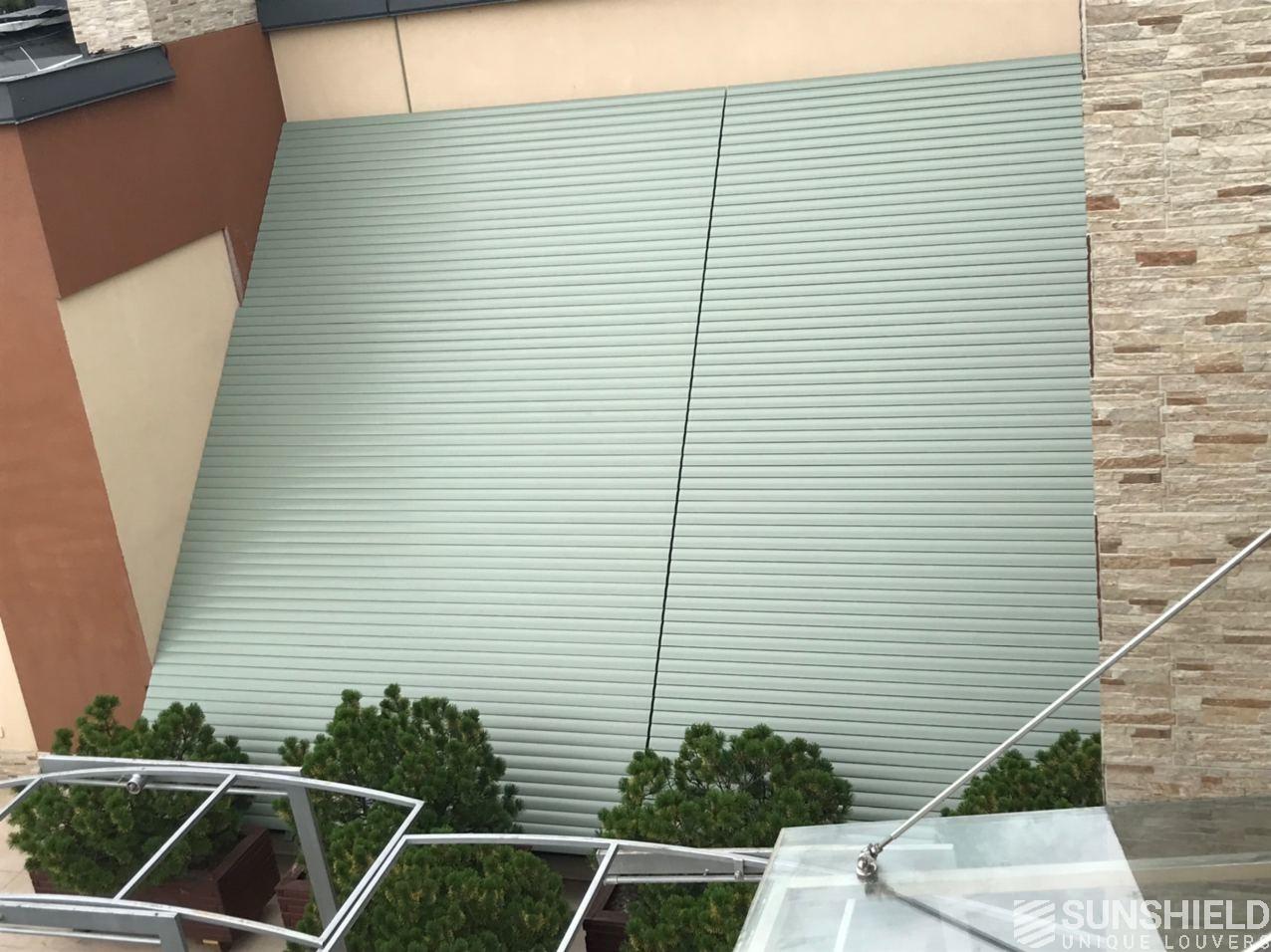 Commissioned by Manezh, Sunshield made two louver systems for a residency in Ukraine. Together these have an area of over 31 m2. Manezh installed the systems on a sloping glass roof.