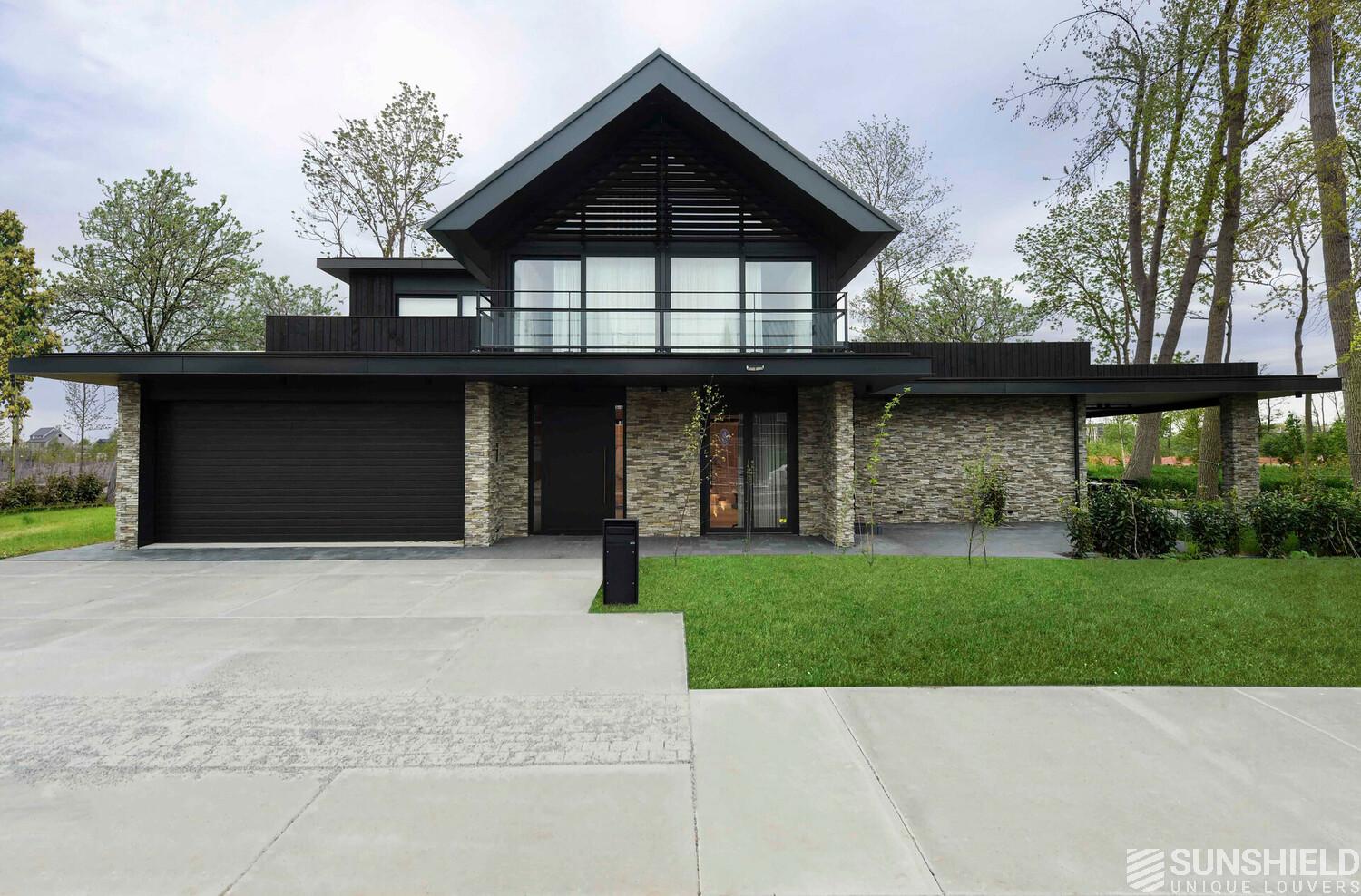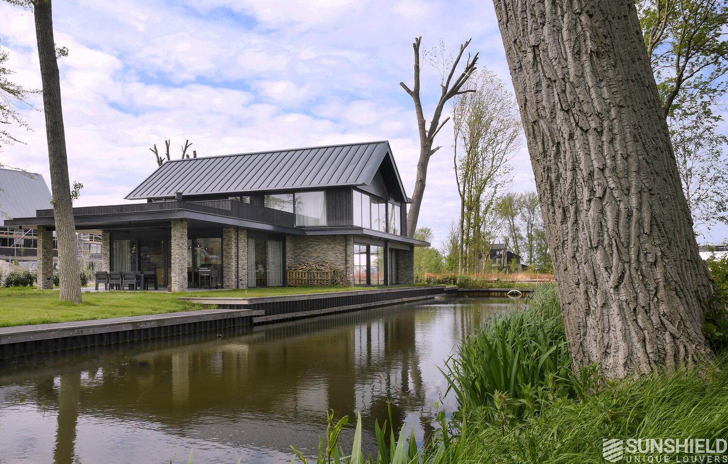 Here is a prairie style villa, designed by DenOlderVleugels Architects & Associates, equipped with unique louvers. By Sunshield.