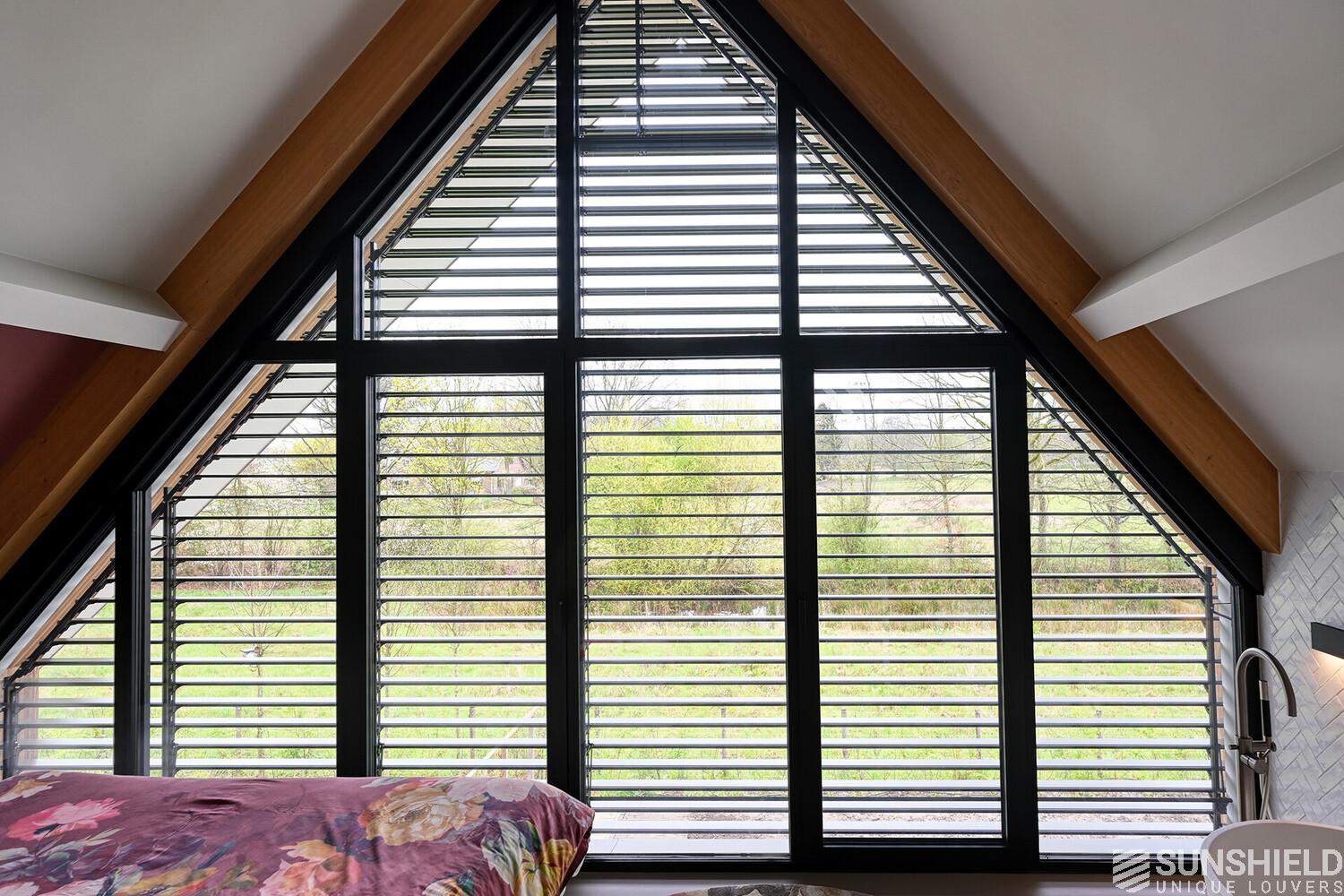 Here is a detached house equipped with unique louvers. By Sunshield, in collaboration with construction supervisor Raad & Uitvoering in Tilburg.