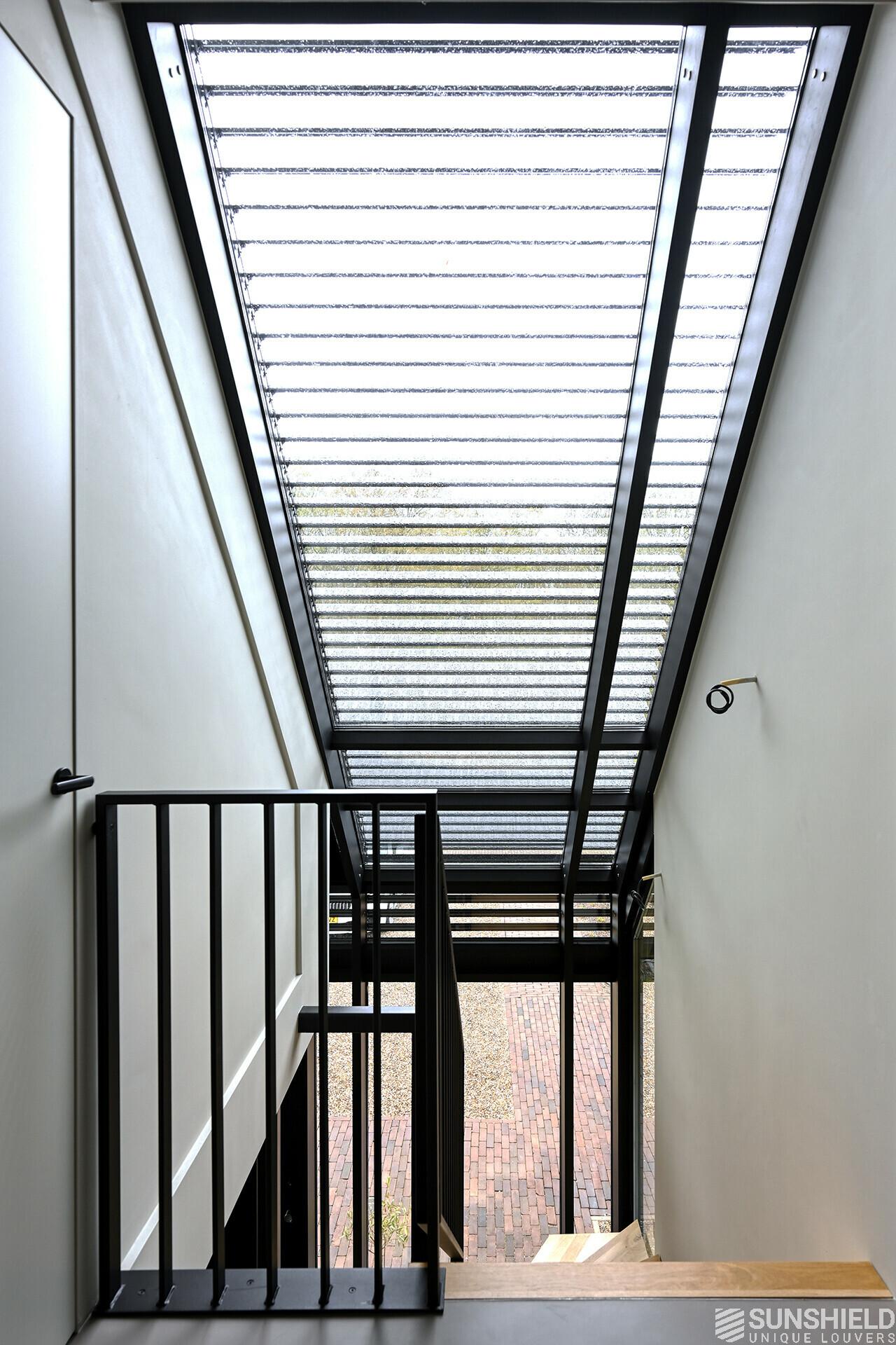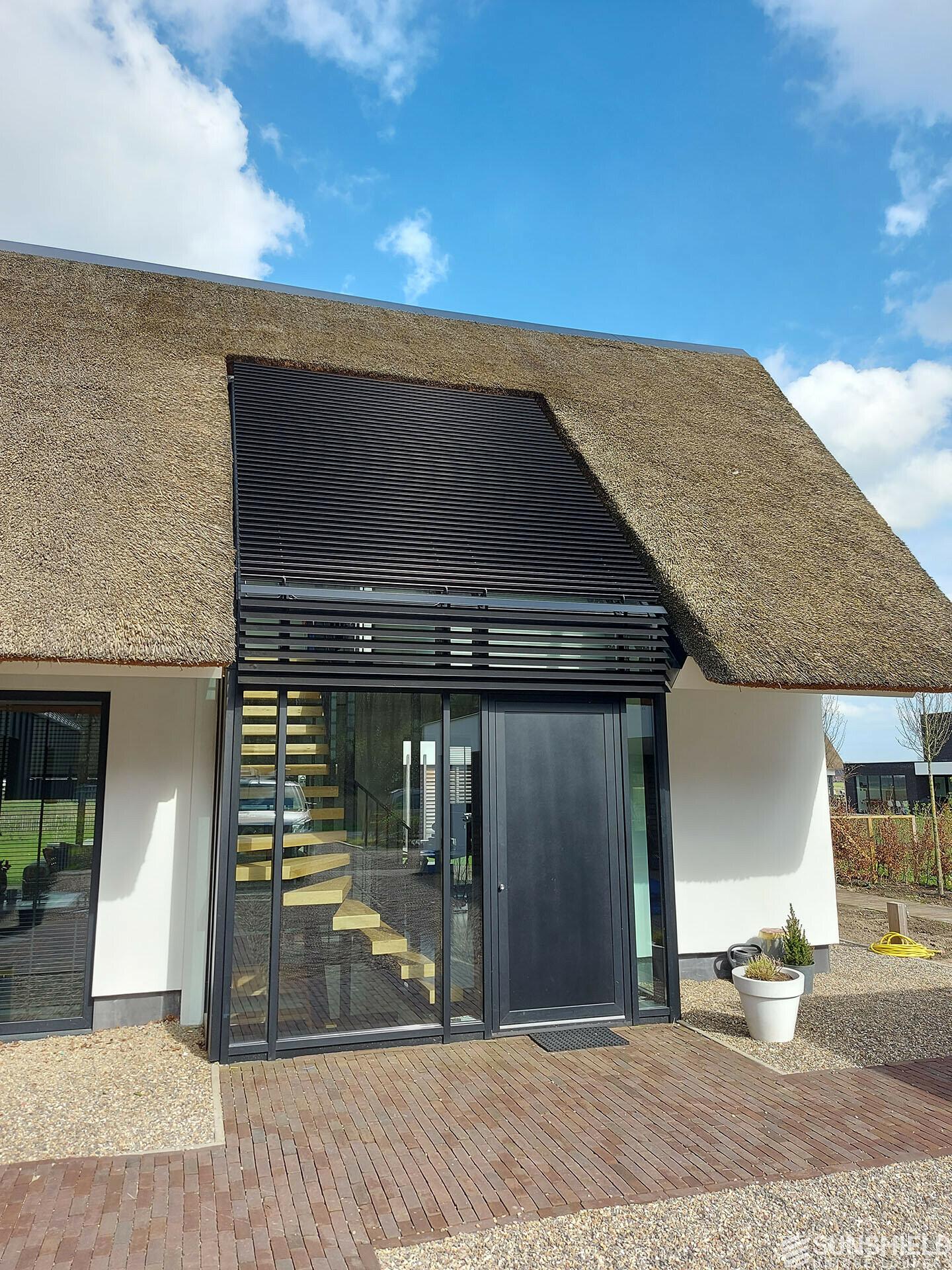 The residents have opted for the 107-E louver. A slat with a width of 107 mm. This slat has a groove so that the slats not only fall over each other, but also into each other.
