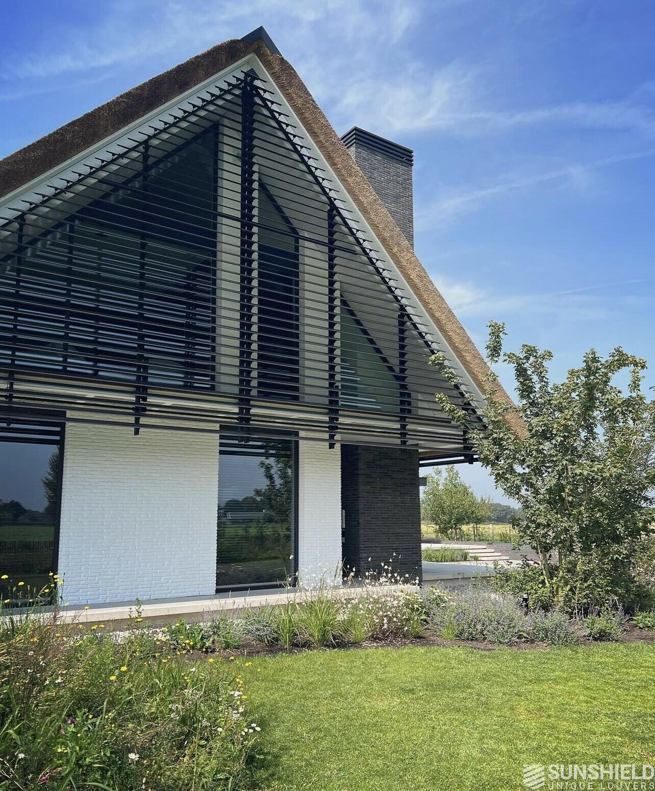 Here is a modern country house fitted with unique louvers. By Sunshield, in collaboration with Van der Horst Aannemers.