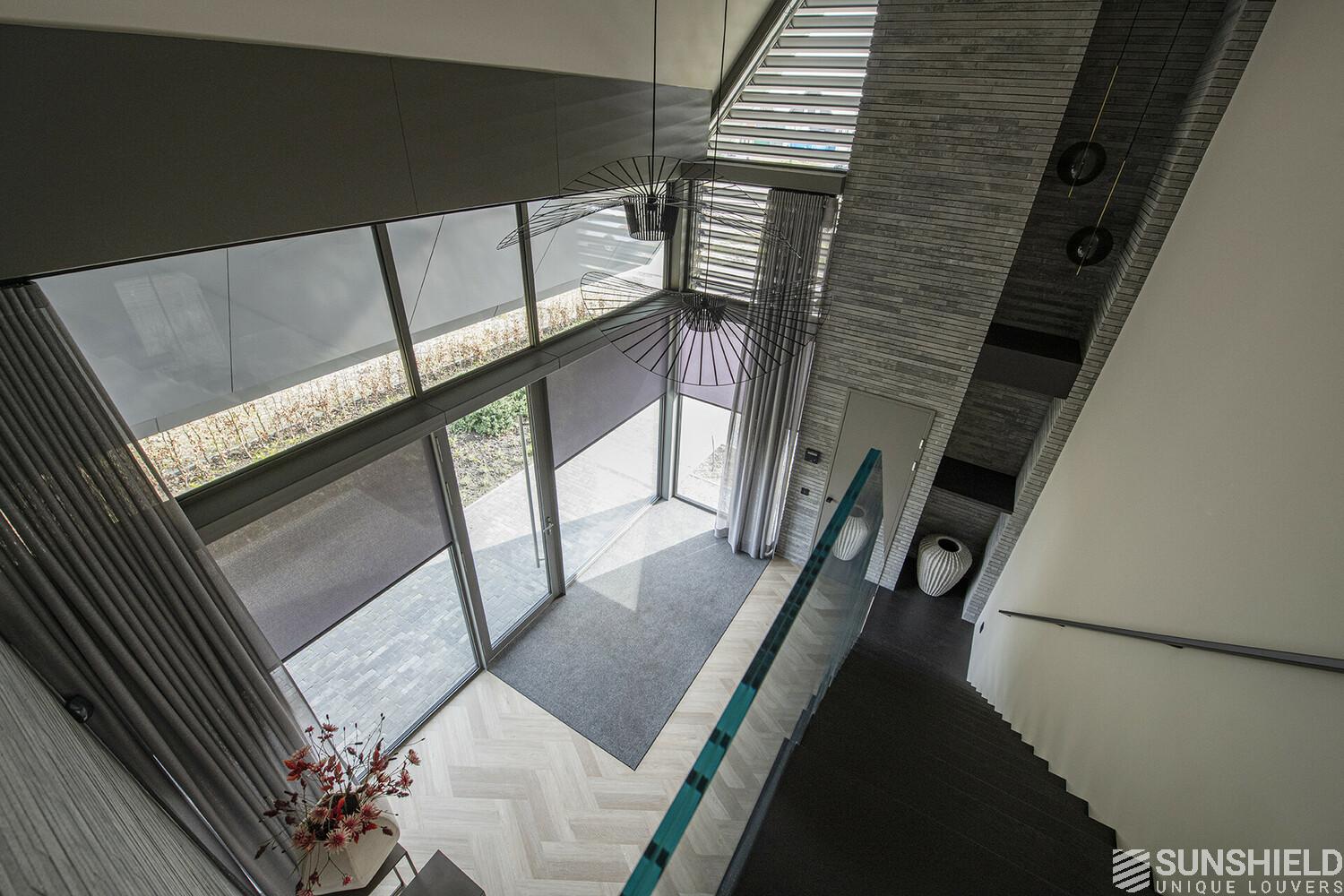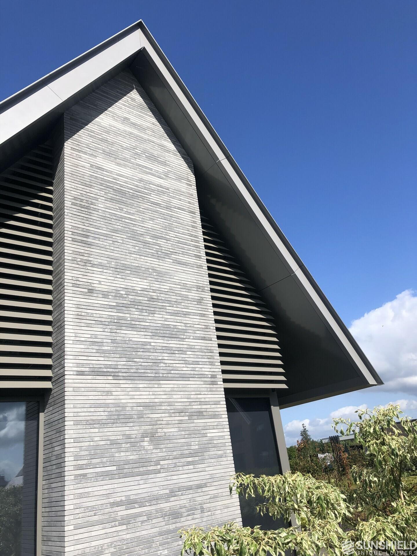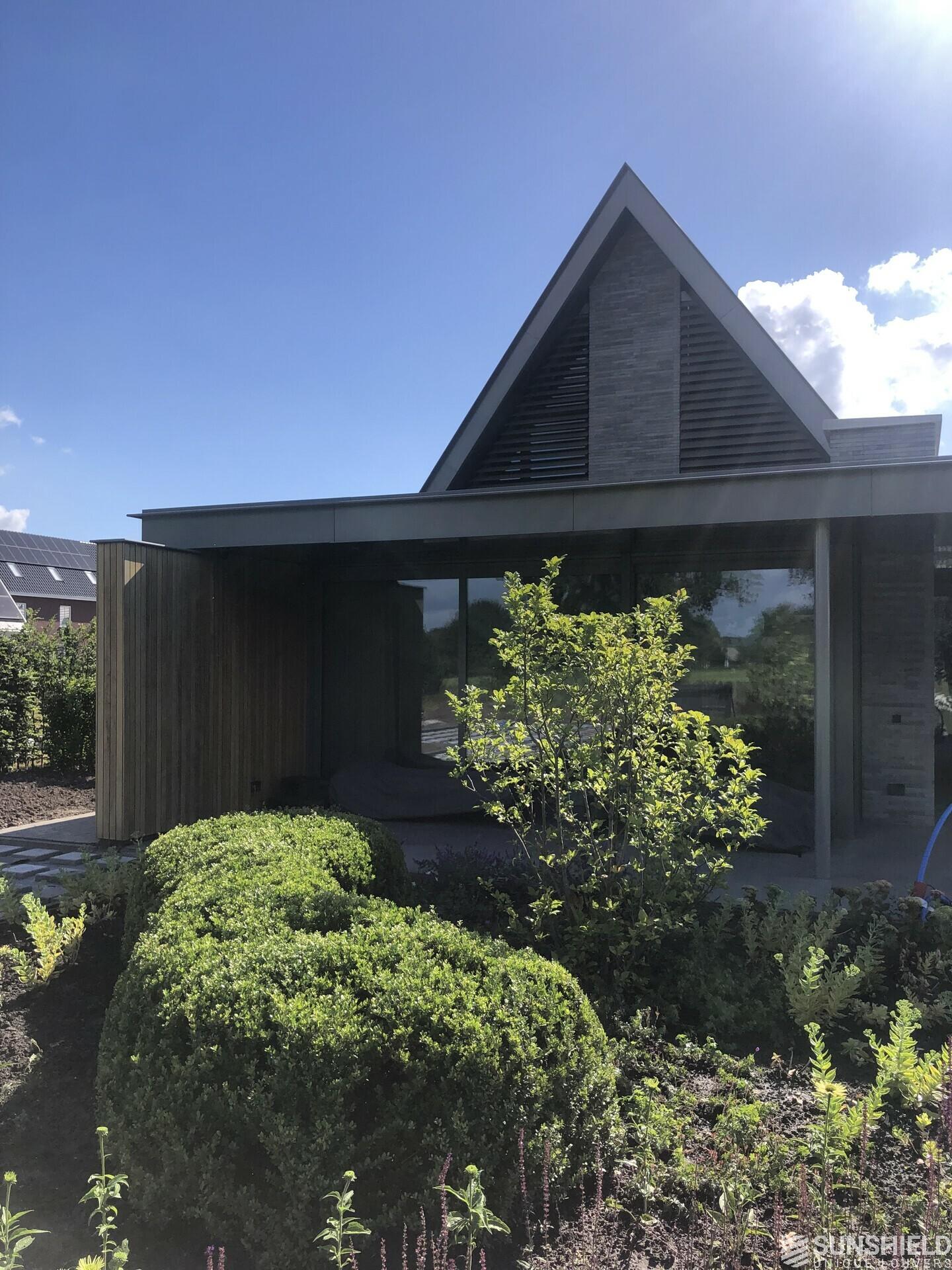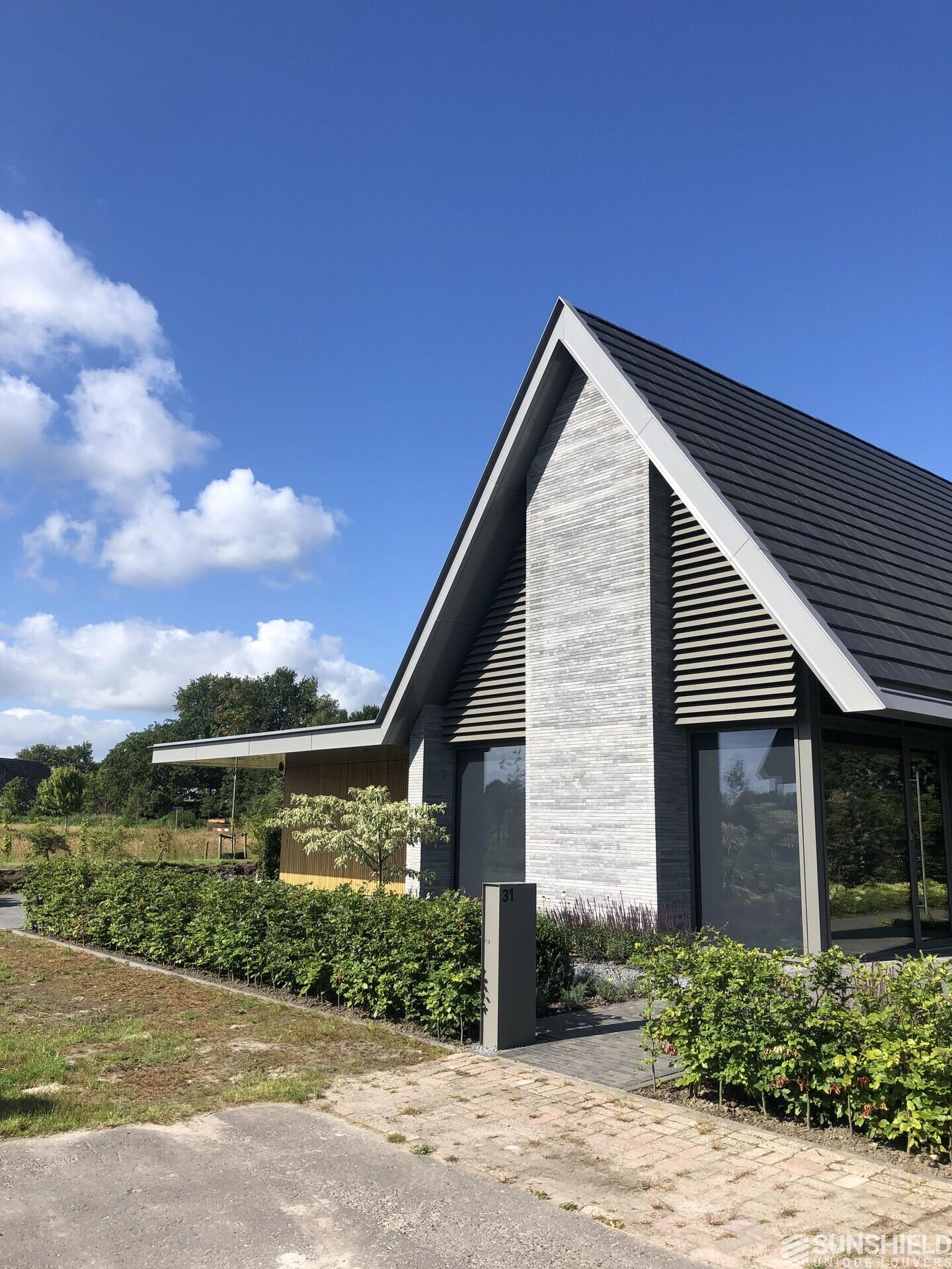 Here, a detached house has been fitted with unique louvers. By Sunshield, in collaboration with Contractor A&M Hersmis in Rijen. The front and rear facades are equipped with slat systems.