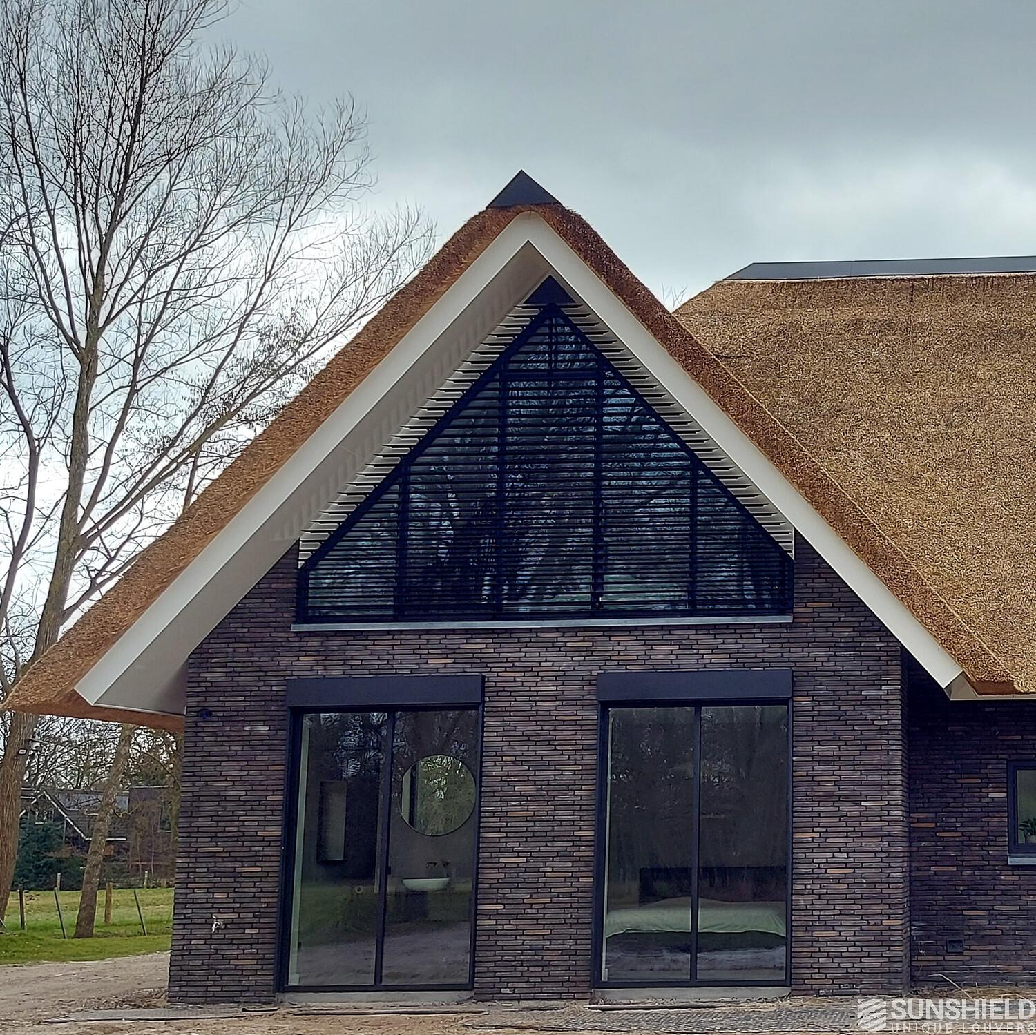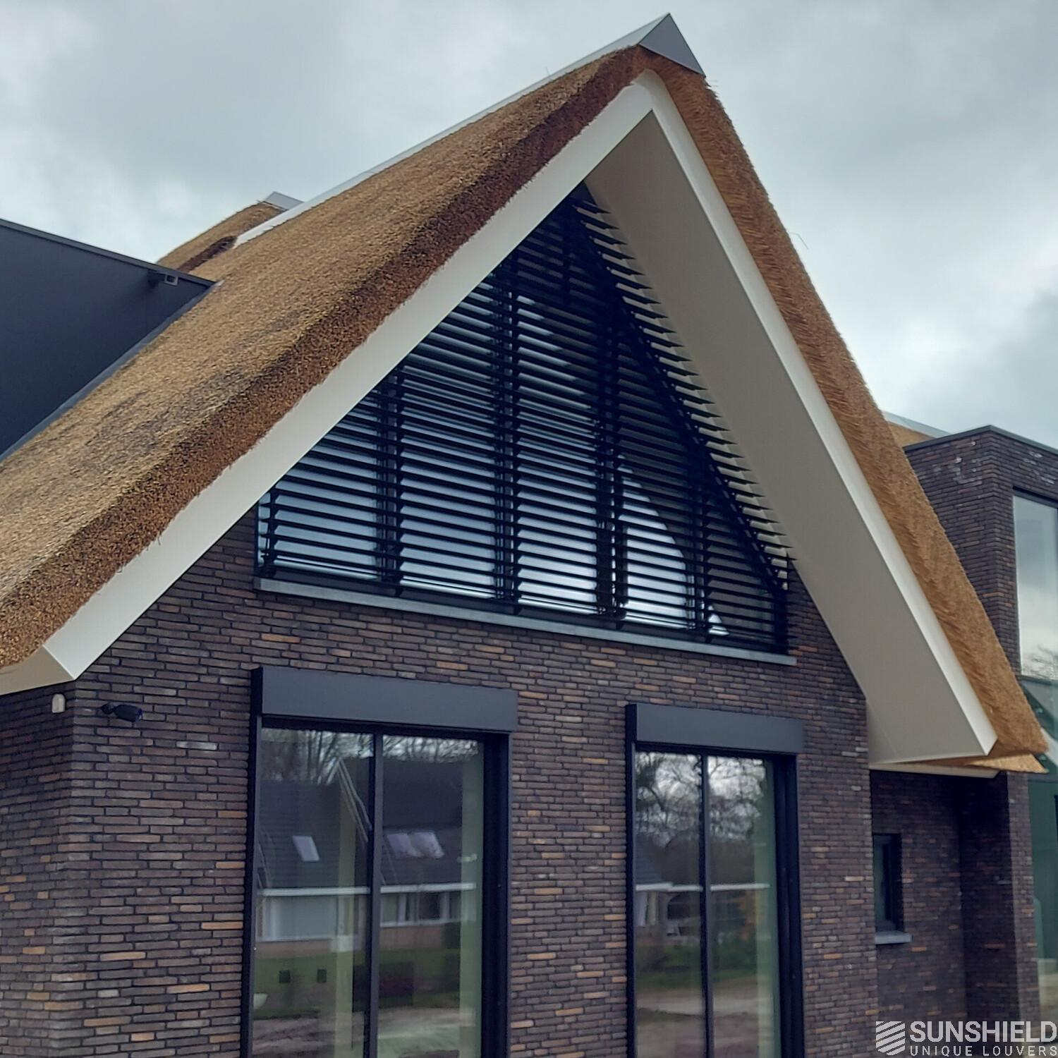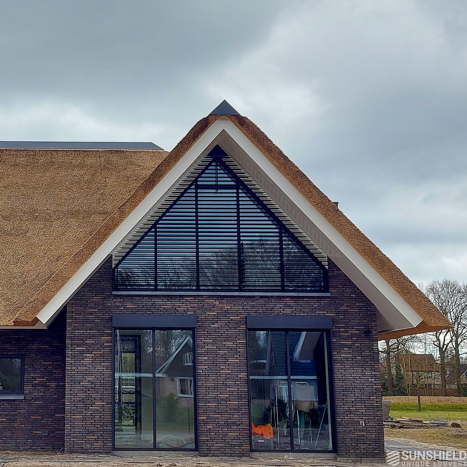 Here is a modern country house equipped with unique louvers. By Sunshield, commissioned by Fikkert Zonwering also located in Almelo (NL).