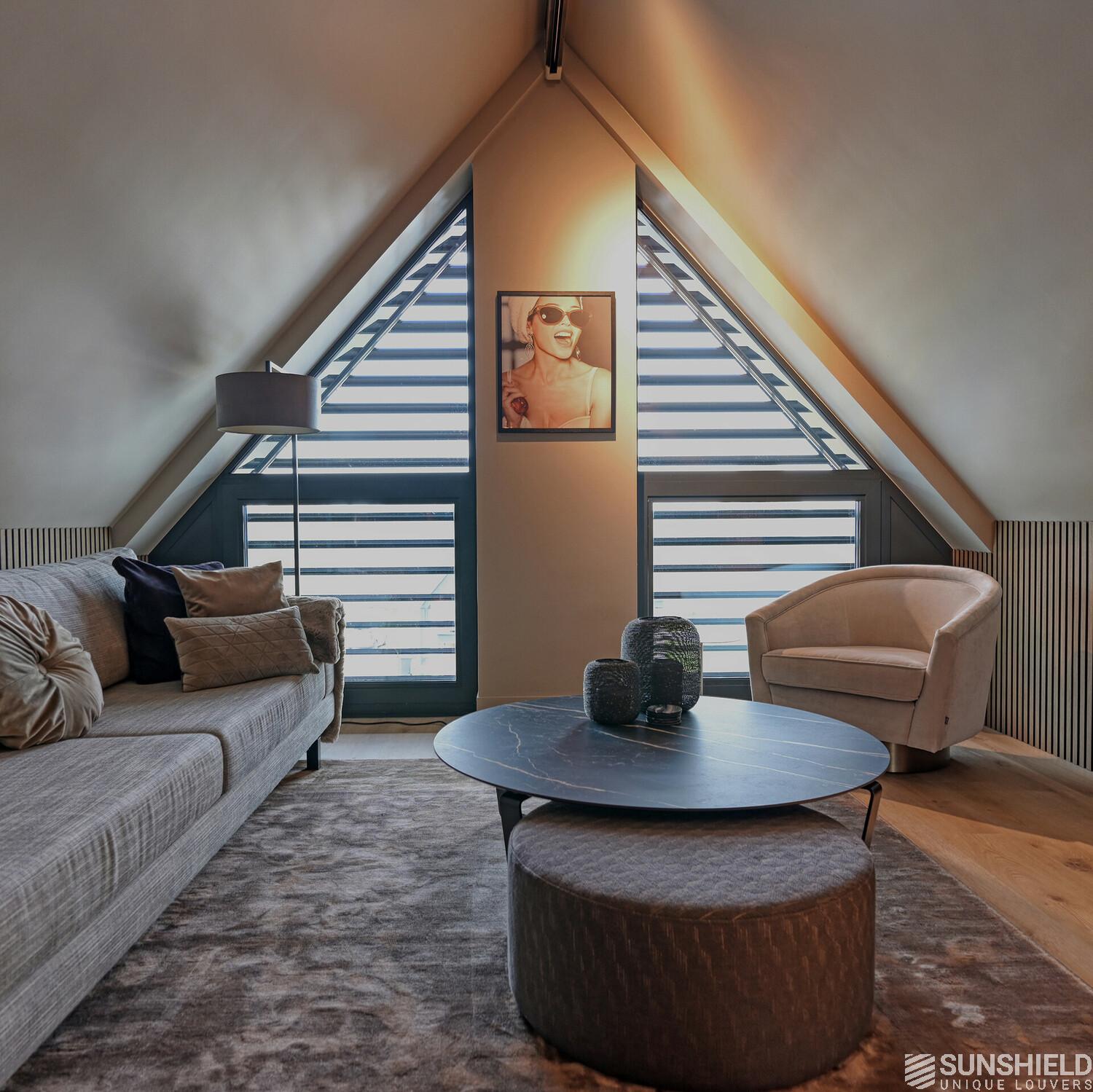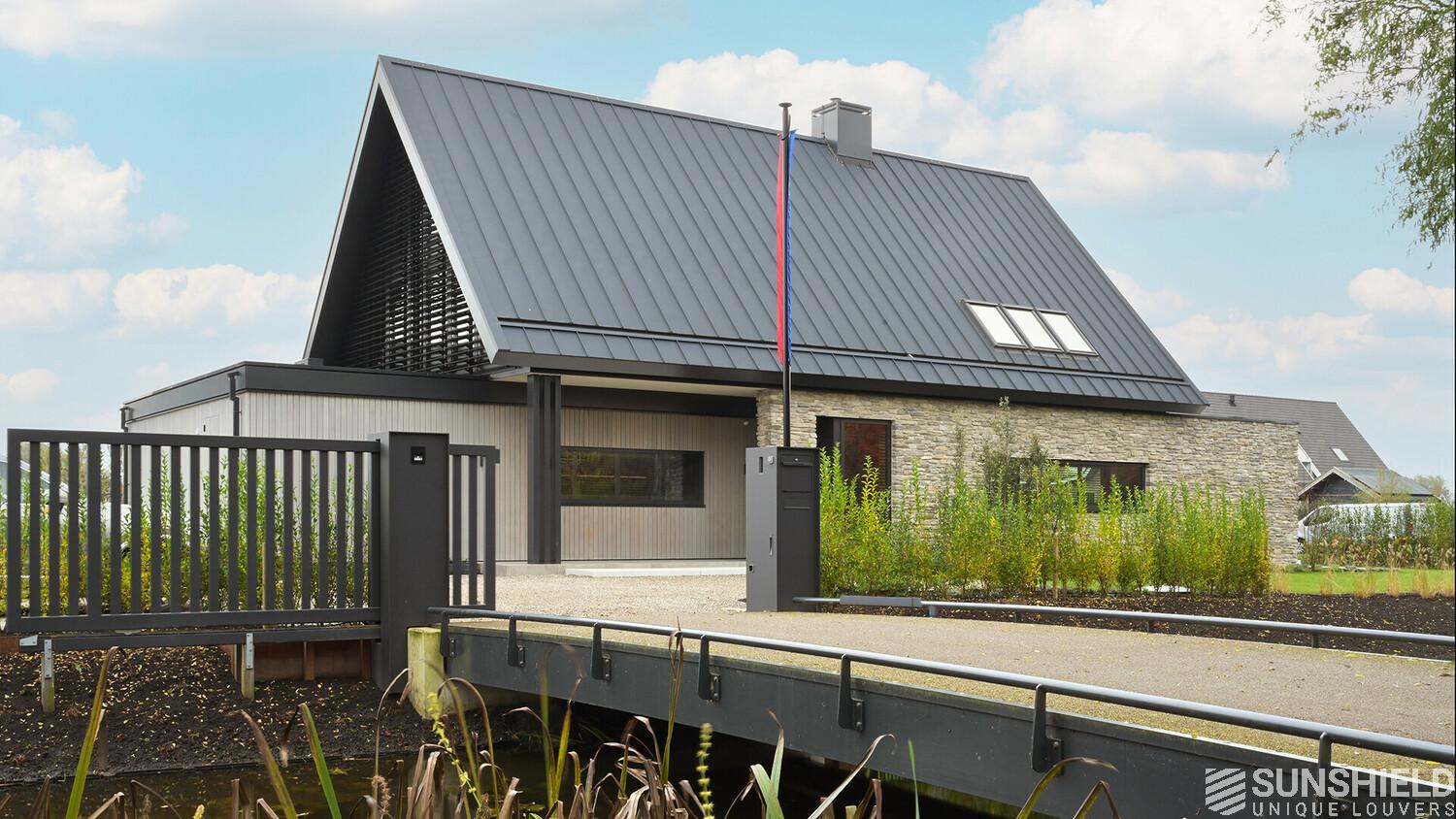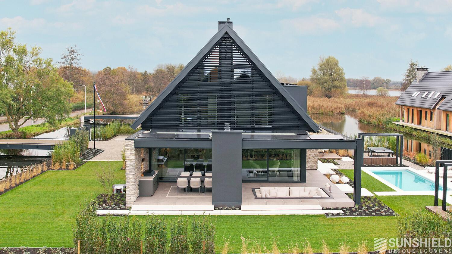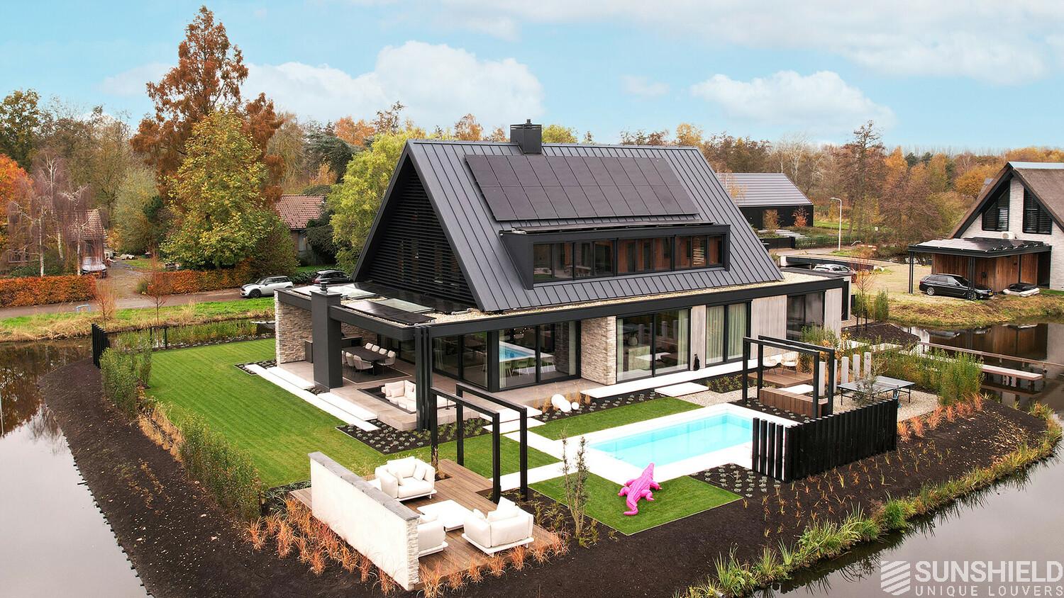 Here, a modern villa has been equipped with unique louvers. By Sunshield, commissioned by the lighting and design agency Studio MBC in Reeuwijk.